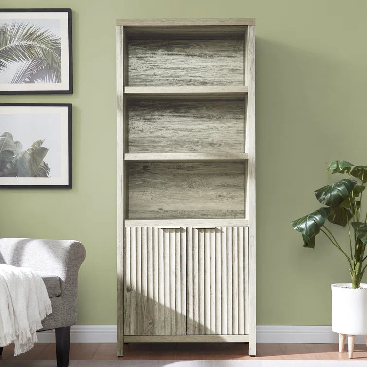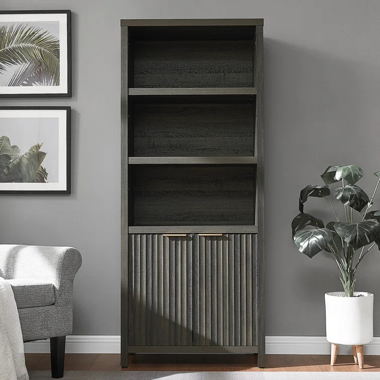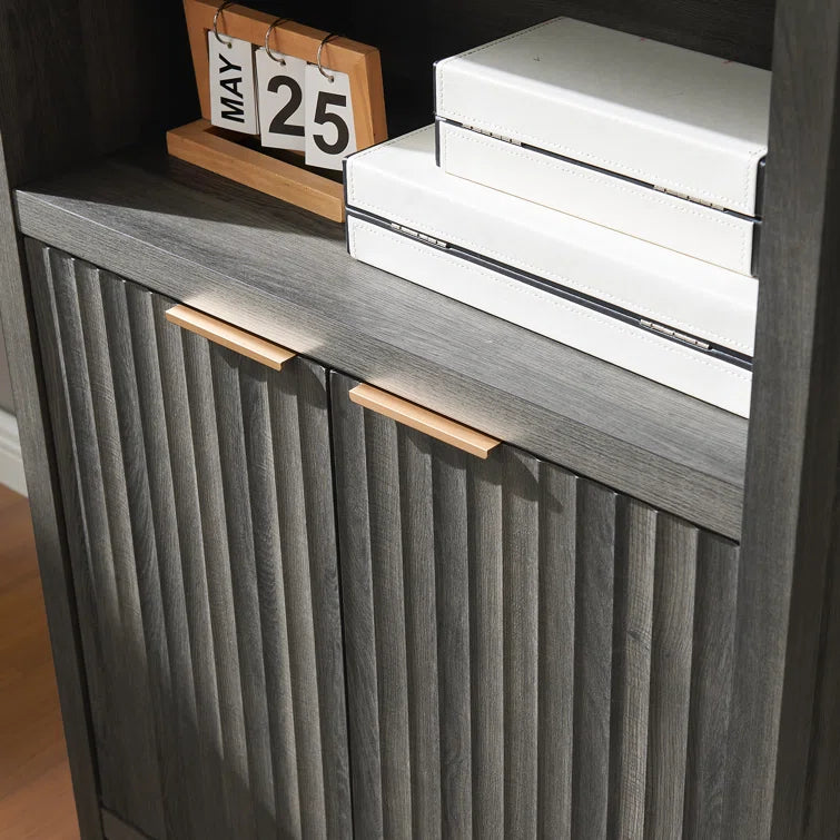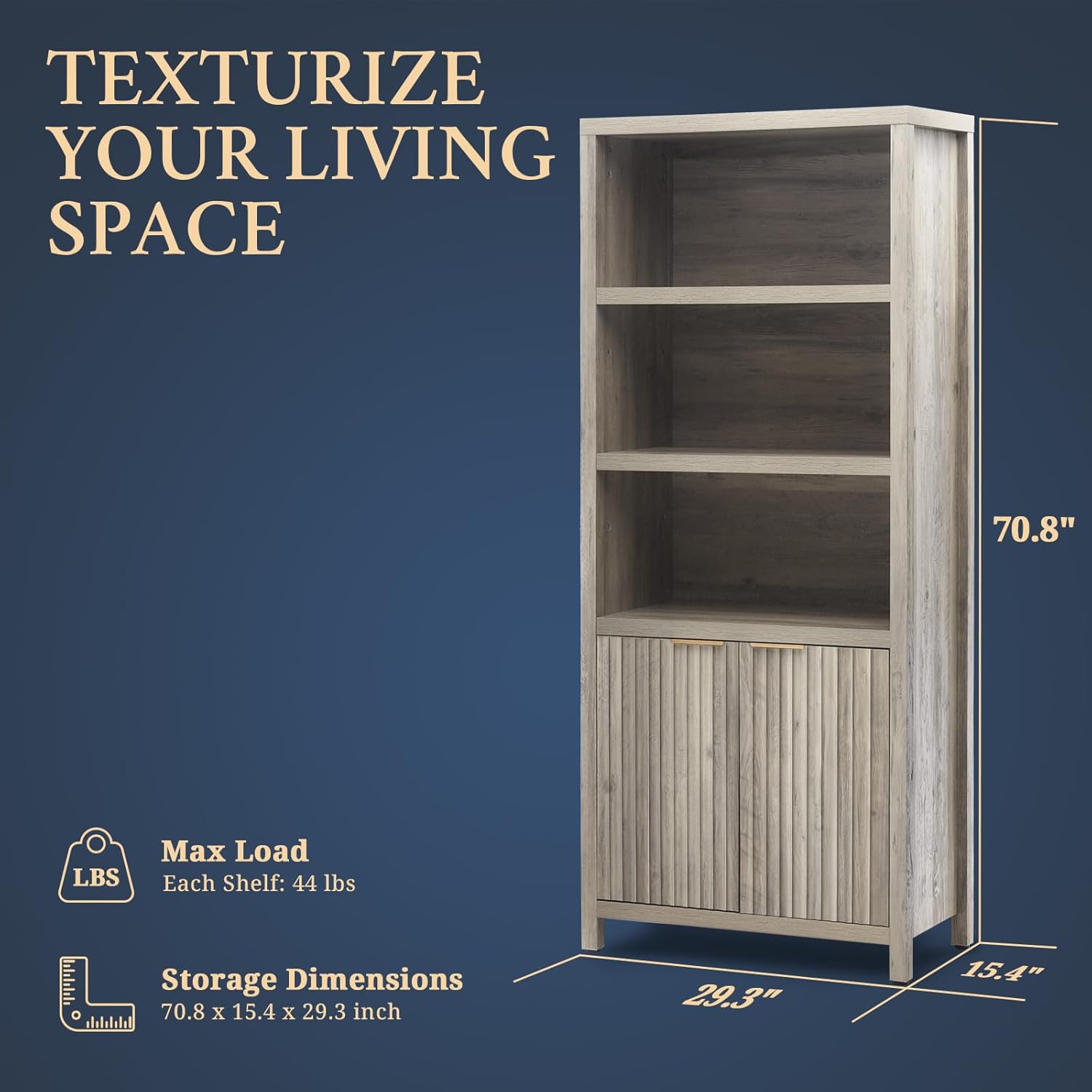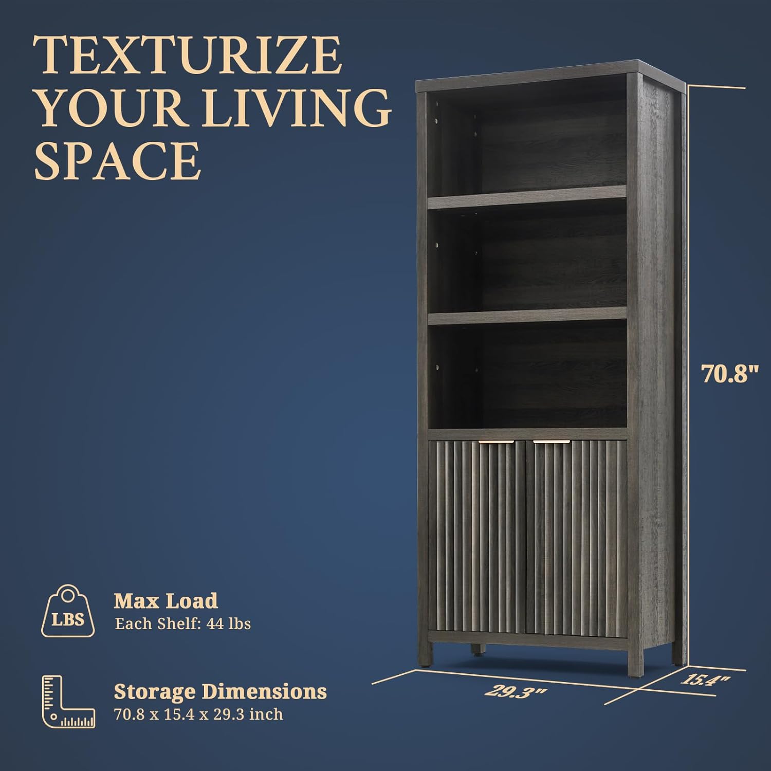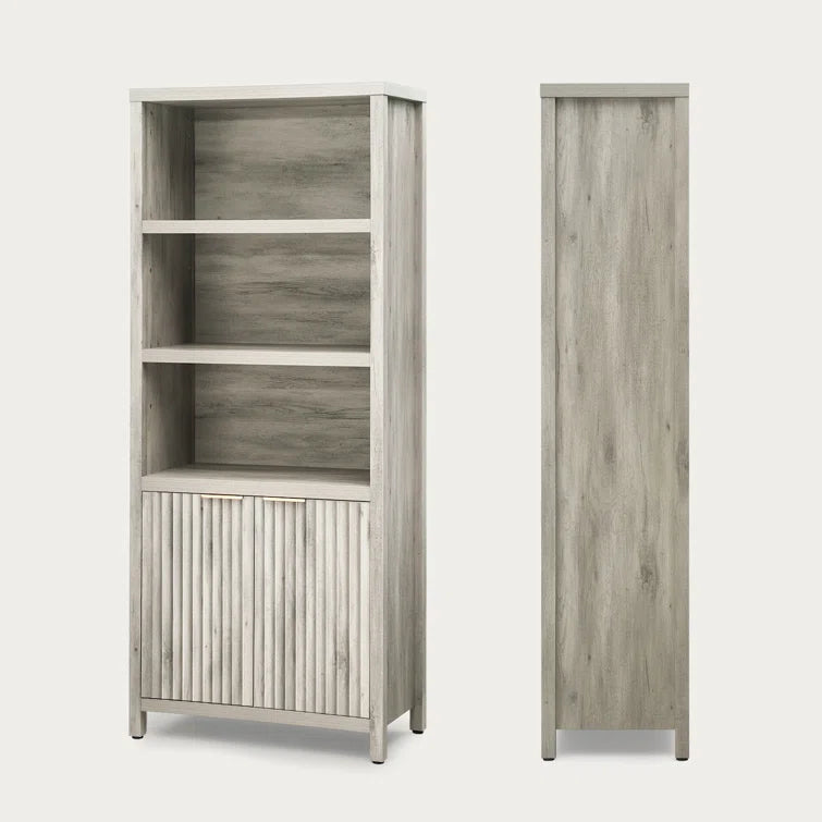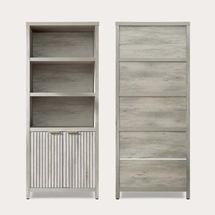 Wooden Fluted 5-Tier Tall Bookcase Cabinet with Doors - Grey Oak / 1PC / Exterior Grade MDF Board is backordered and will ship as soon as it is back in stock.