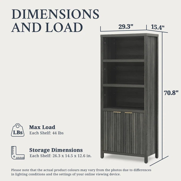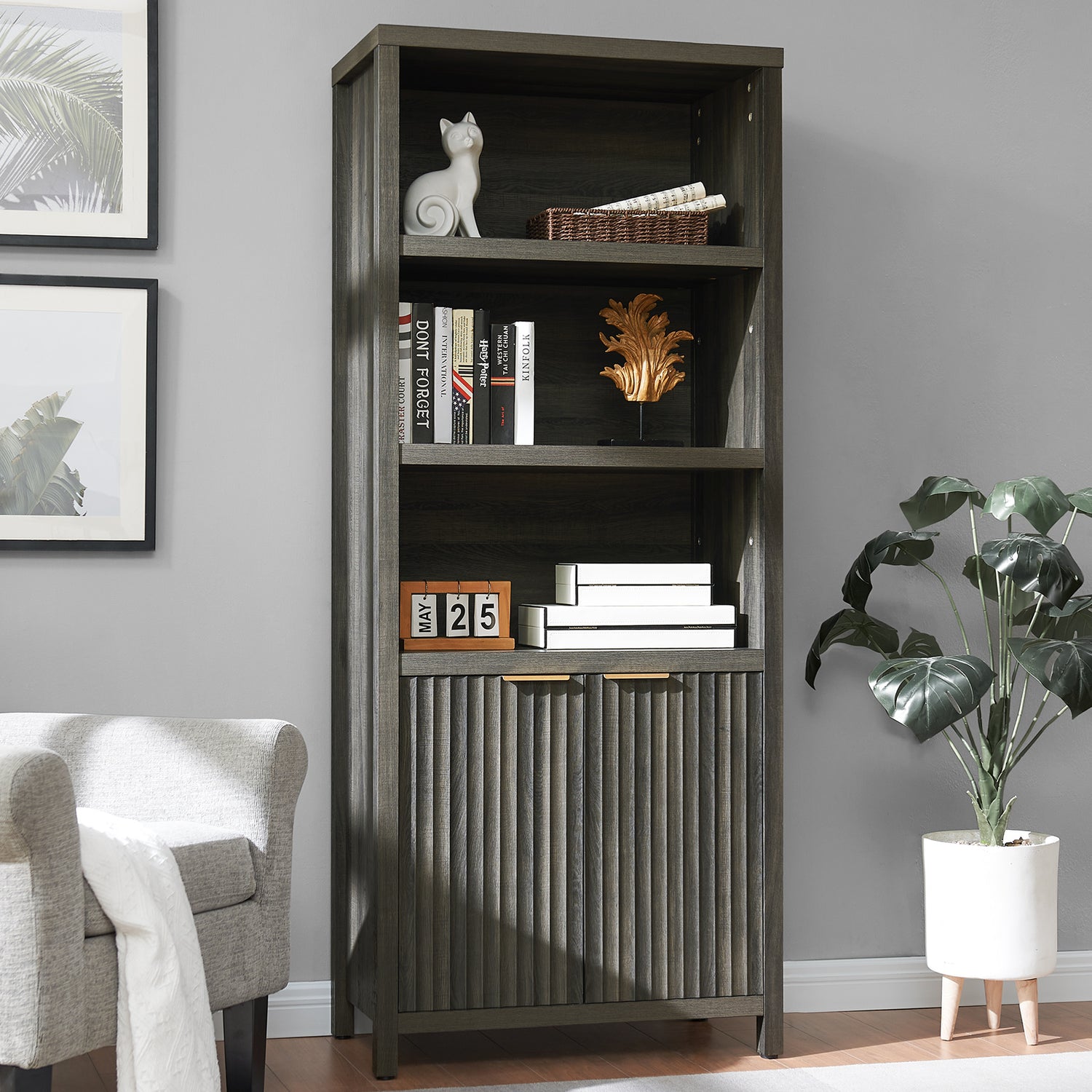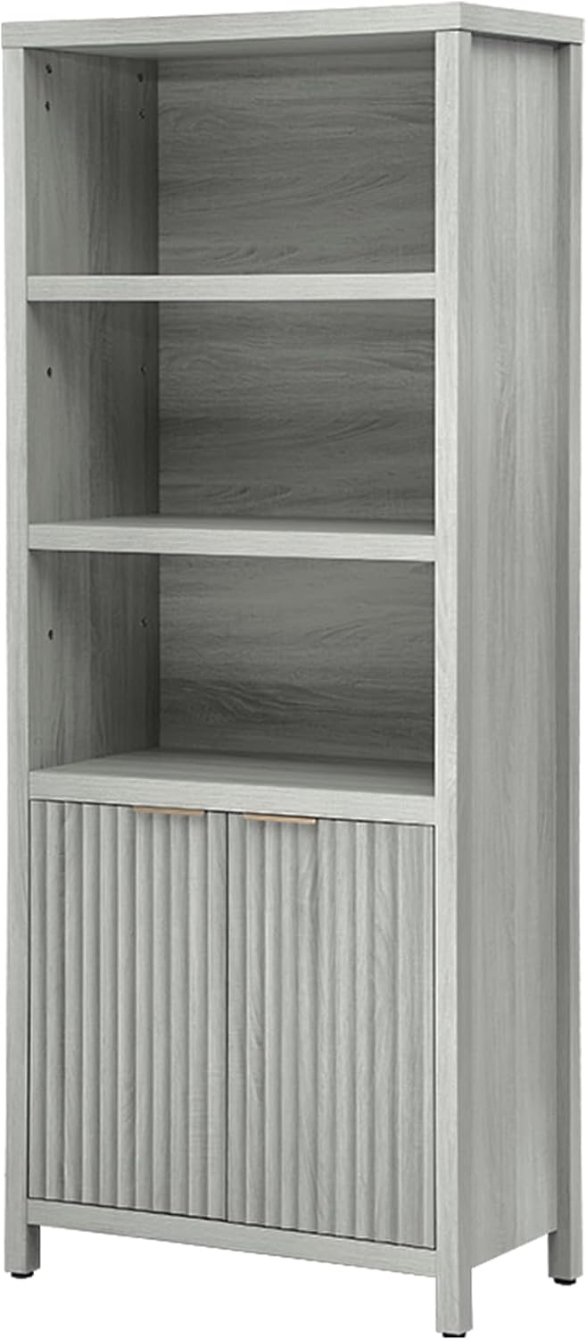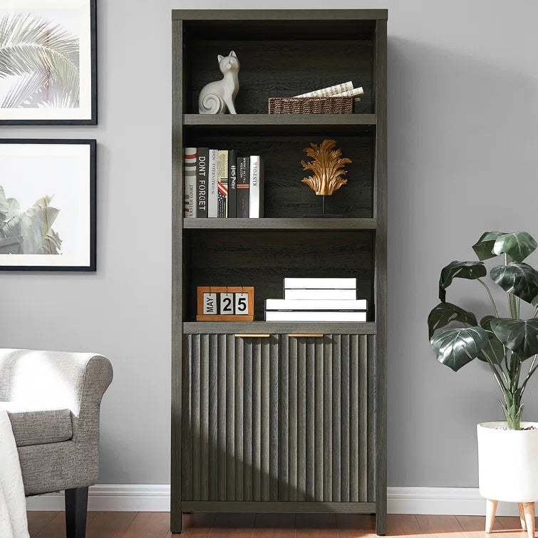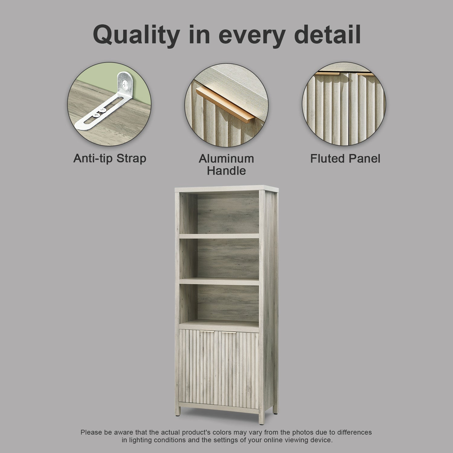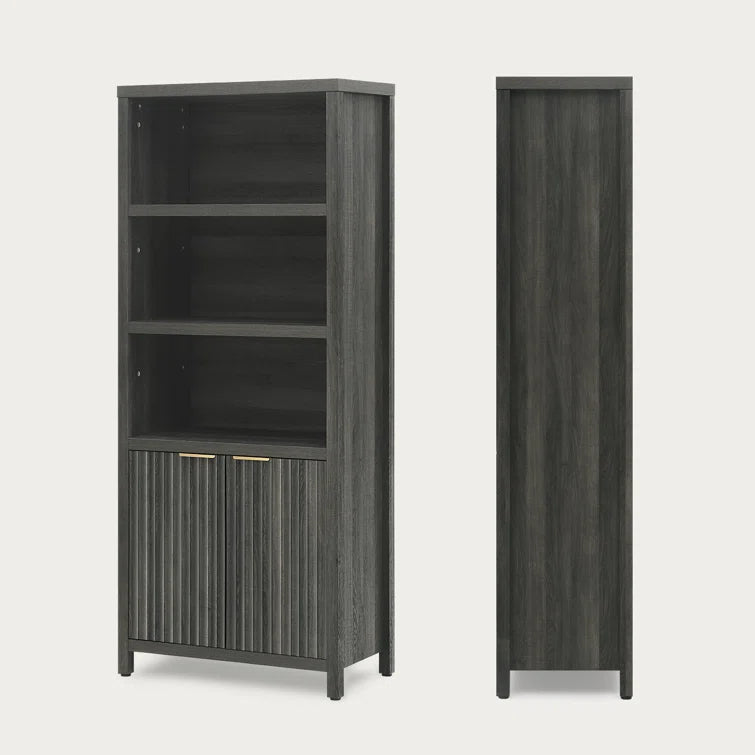 Wooden Fluted 5-Tier Tall Bookcase Cabinet with Doors - Grey Oak / 1PC / Exterior Grade MDF Board is backordered and will ship as soon as it is back in stock.