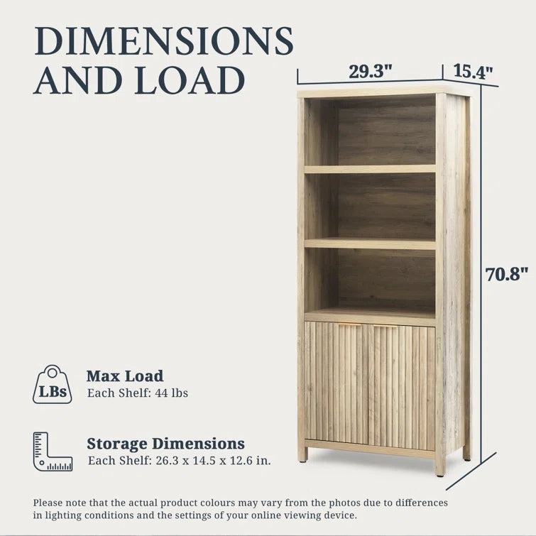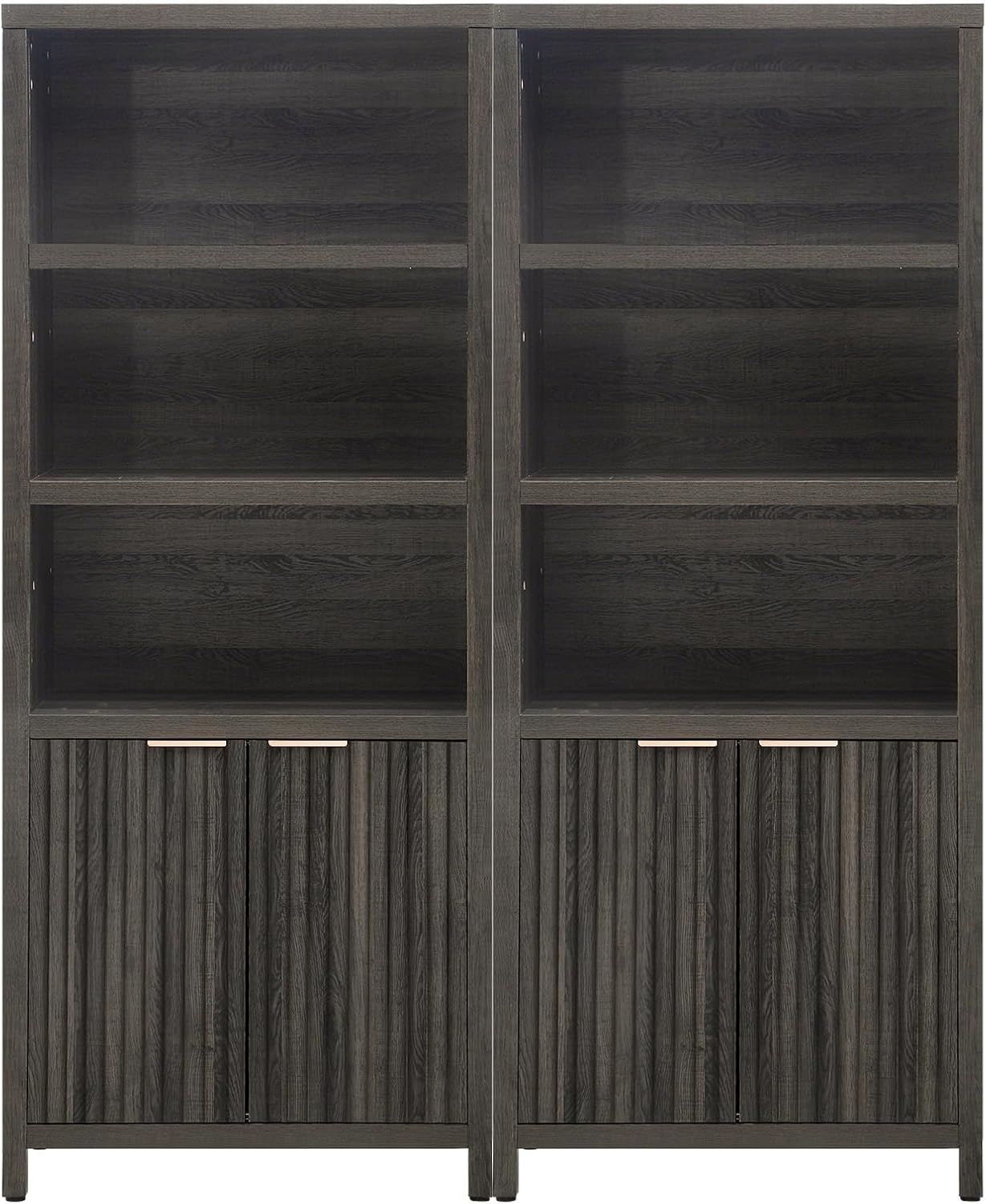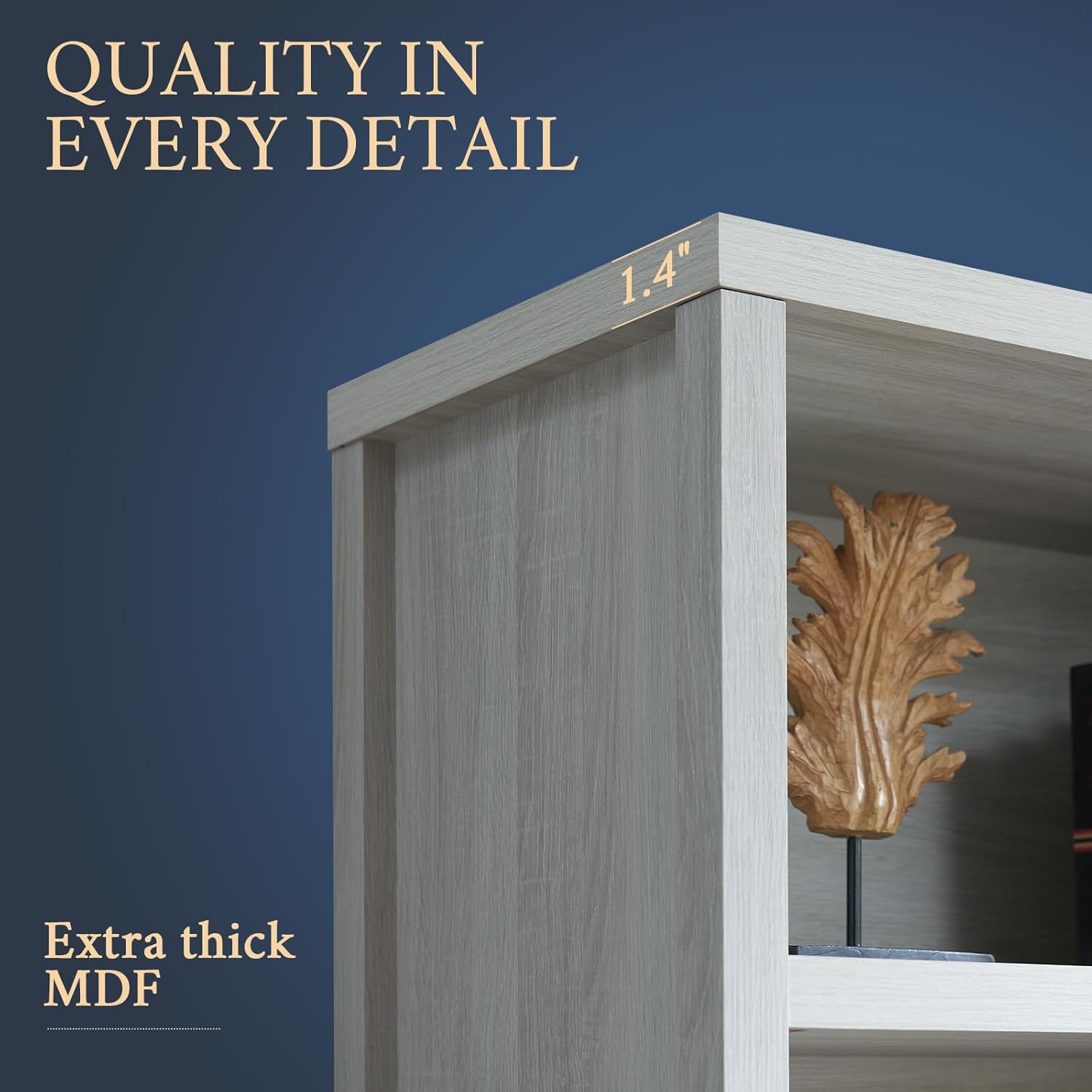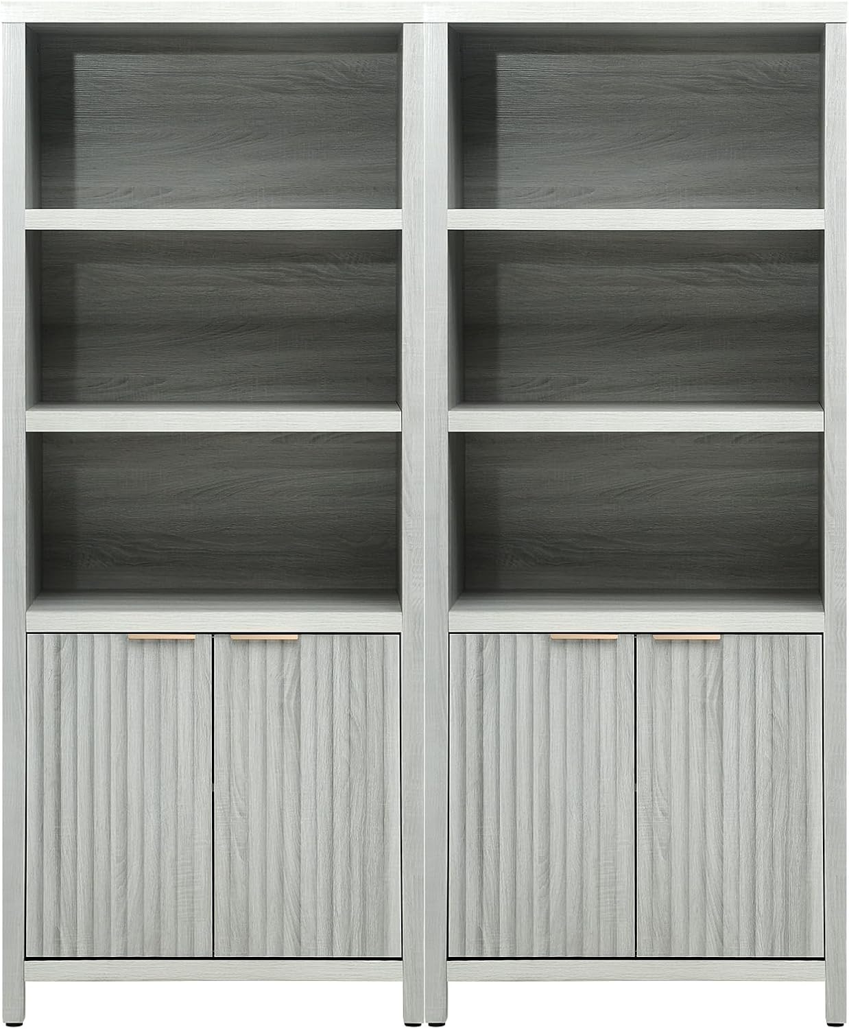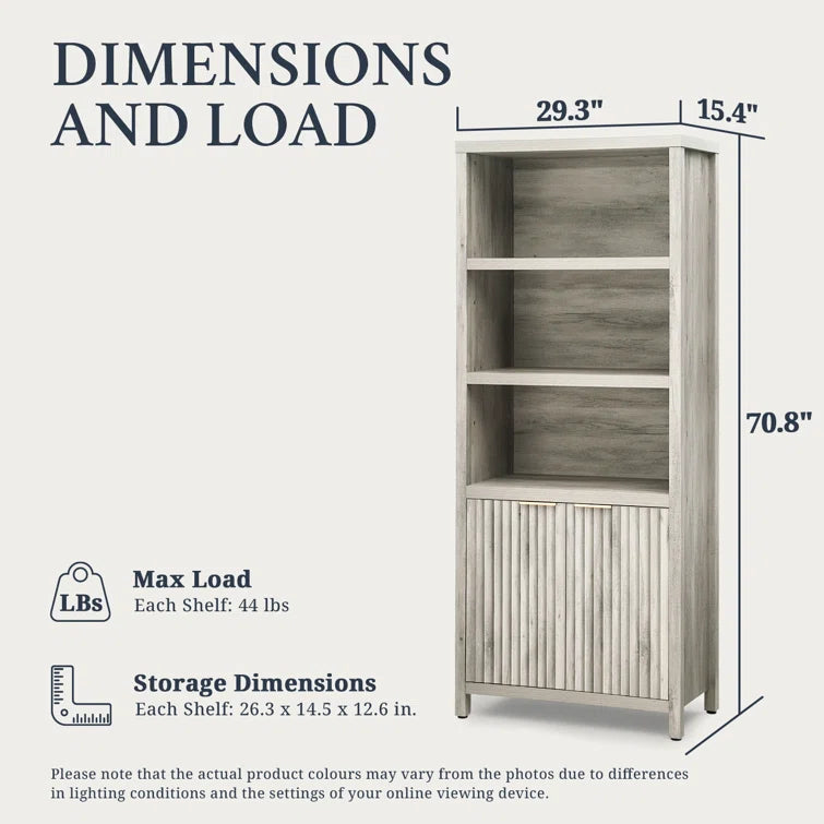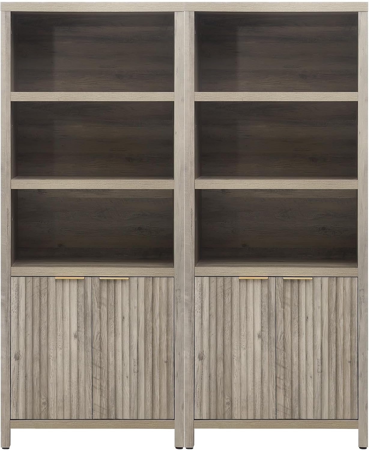 Wooden Fluted 5-Tier Tall Bookcase Cabinet with Doors - Grey Oak / 1PC / Exterior Grade MDF Board is backordered and will ship as soon as it is back in stock.