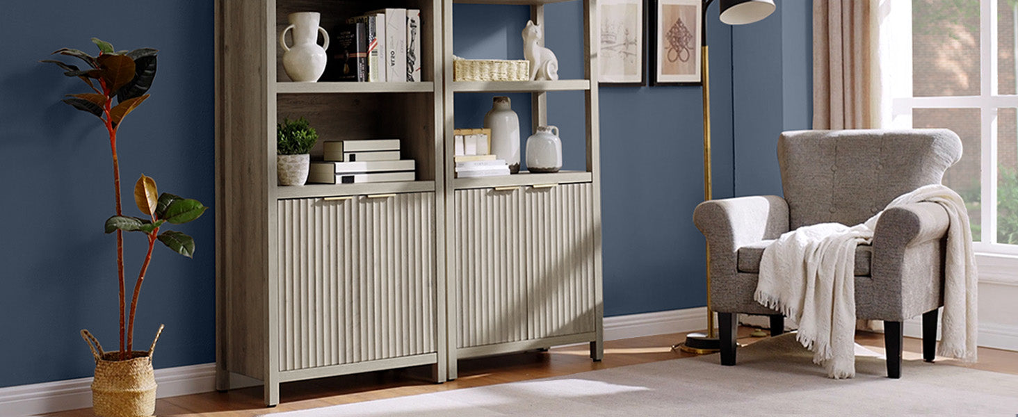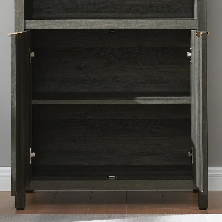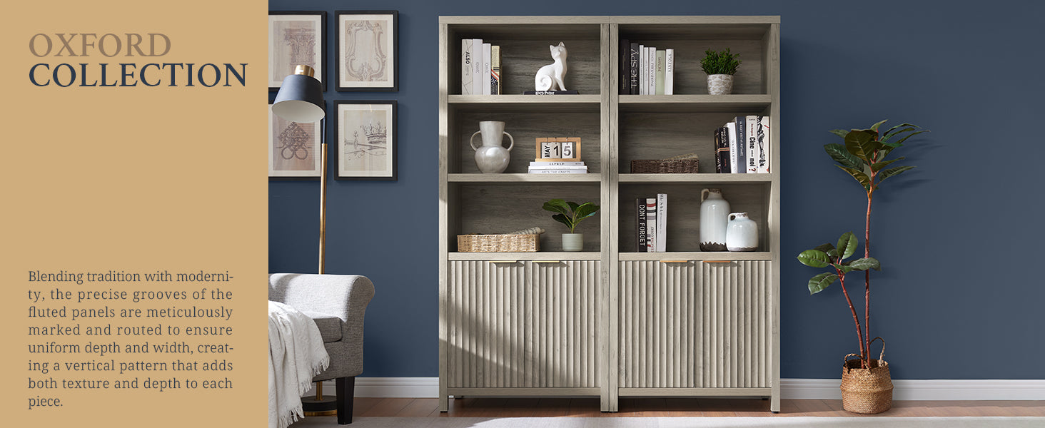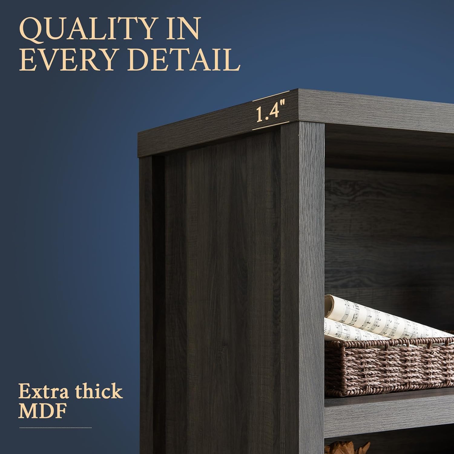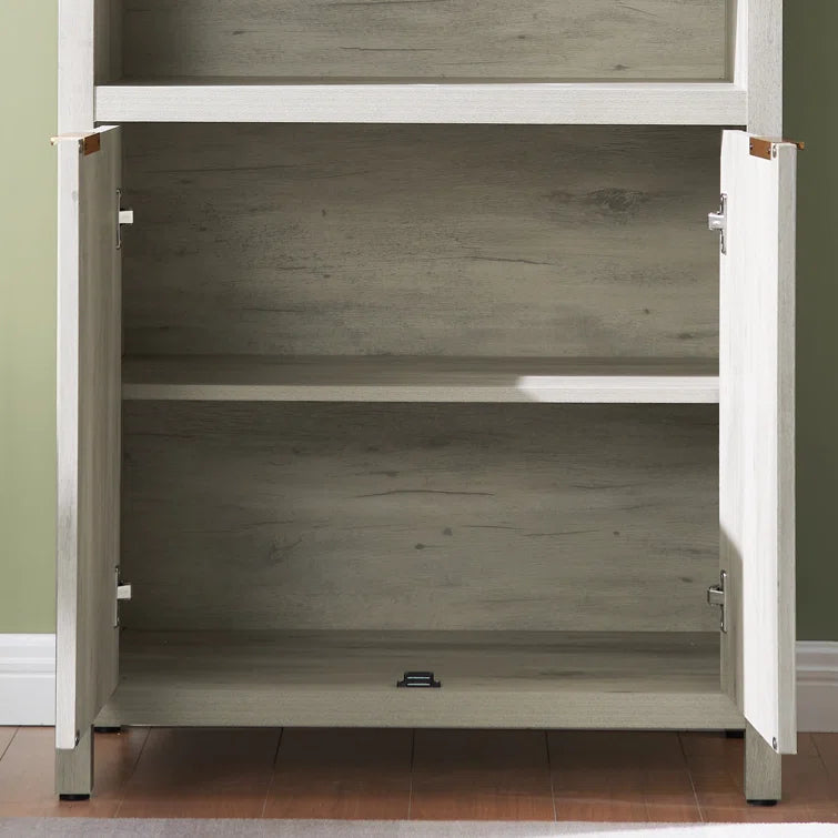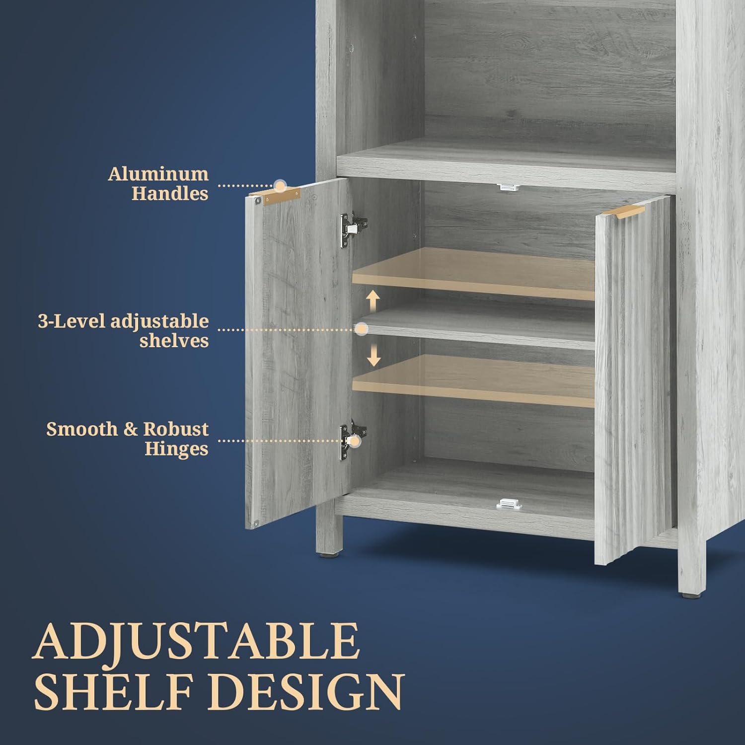Wooden Fluted 5-Tier Tall Bookcase Cabinet with Doors - Grey Oak / 1PC / Exterior Grade MDF Board is backordered and will ship as soon as it is back in stock.