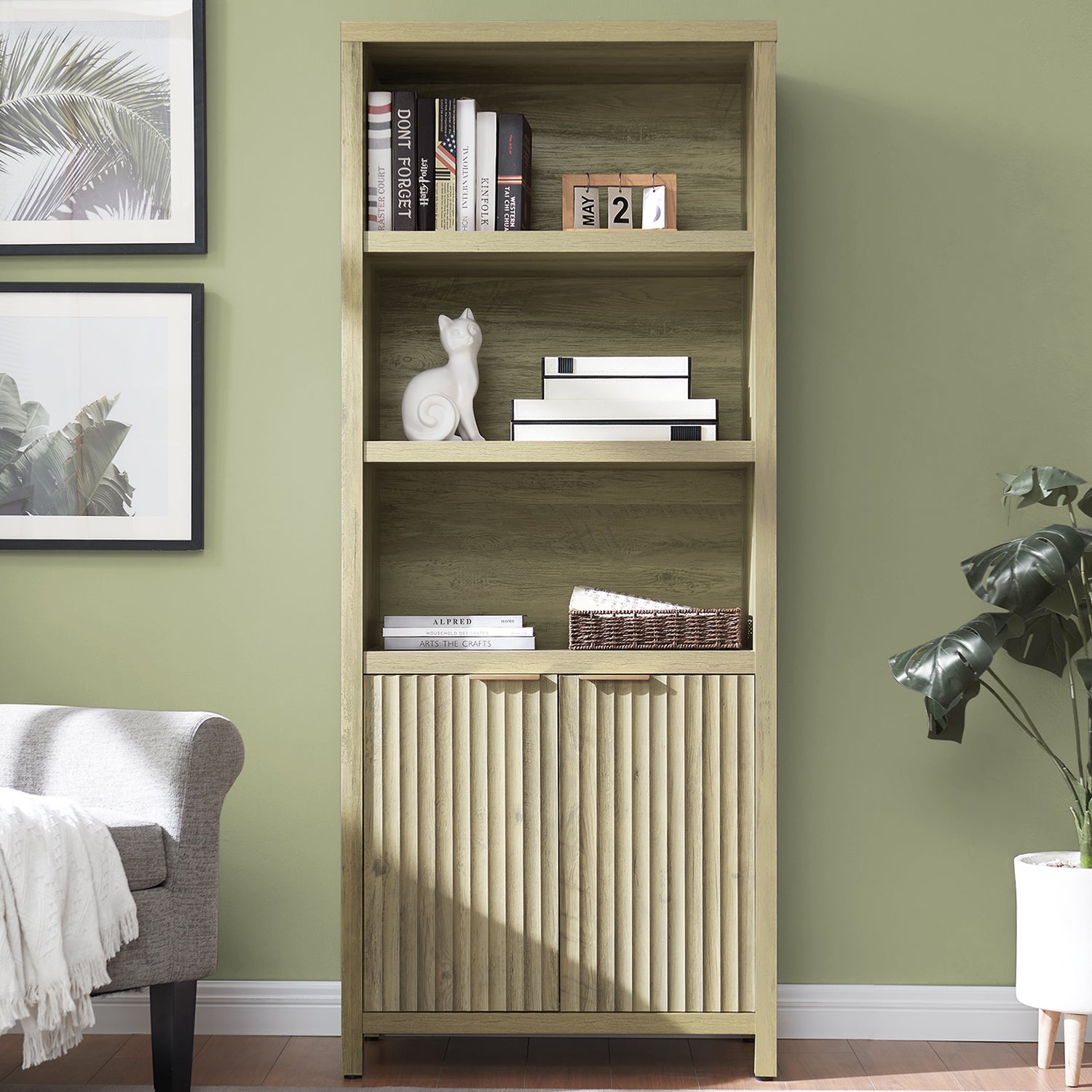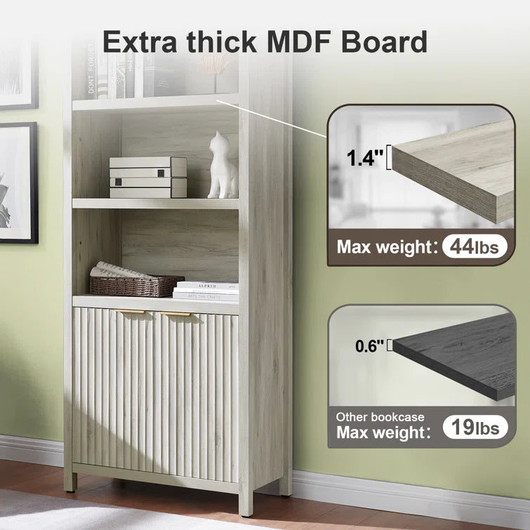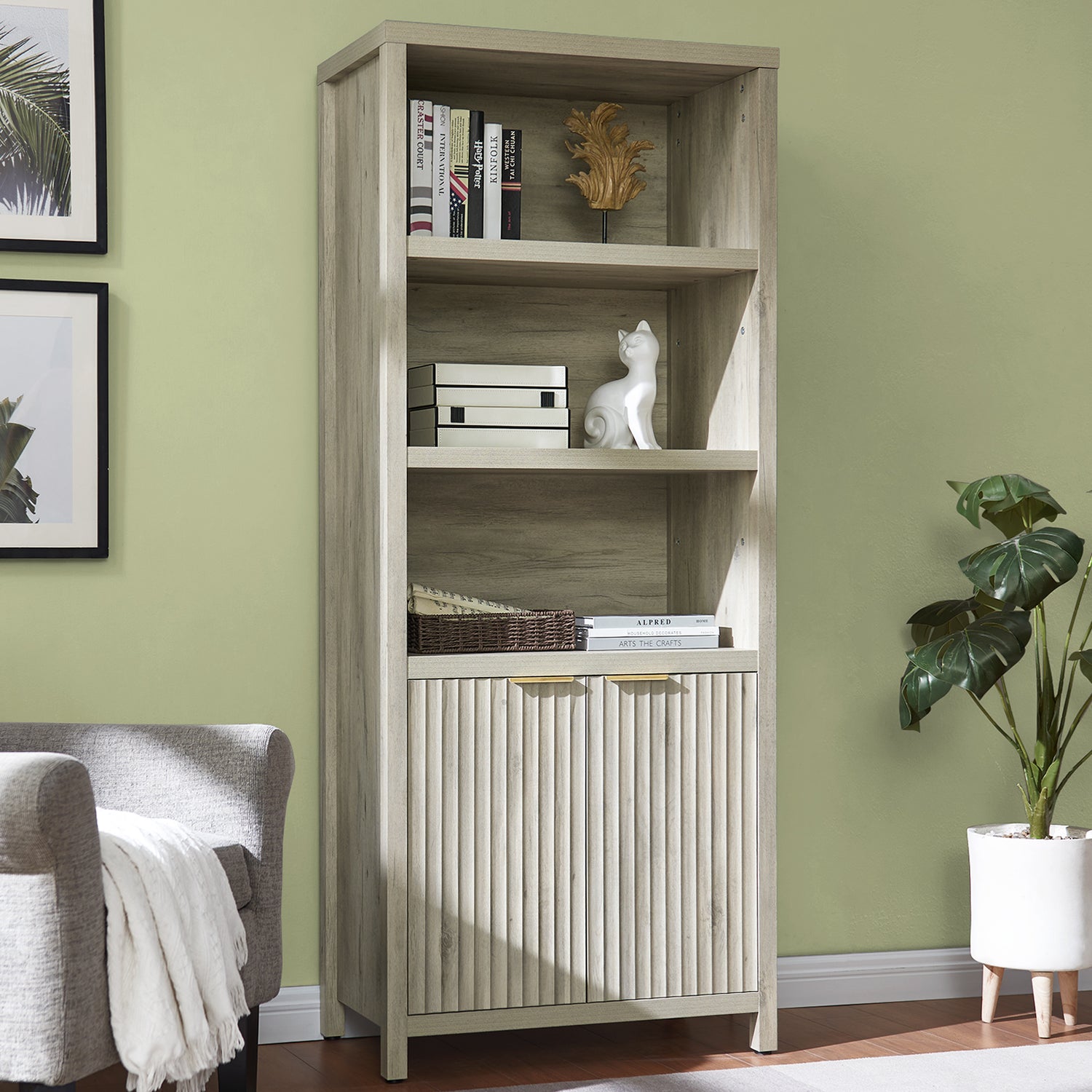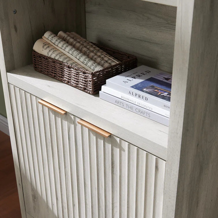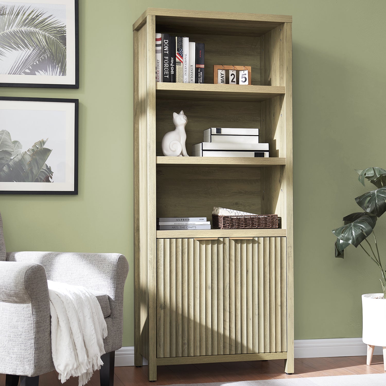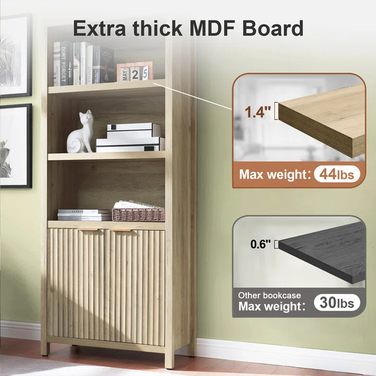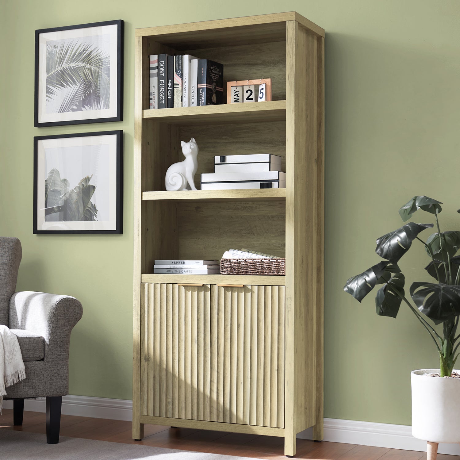 Wooden Fluted 5-Tier Tall Bookcase Cabinet with Doors