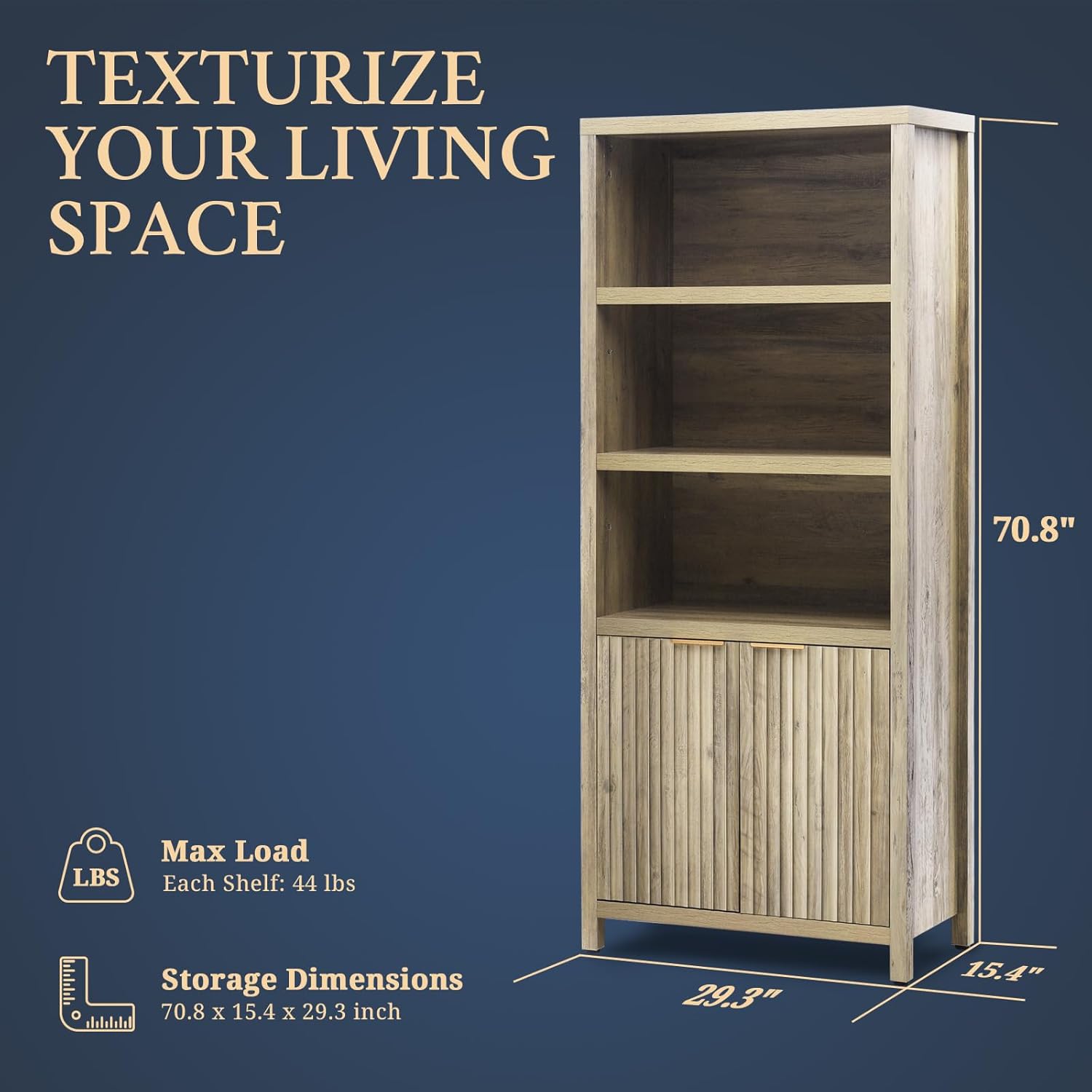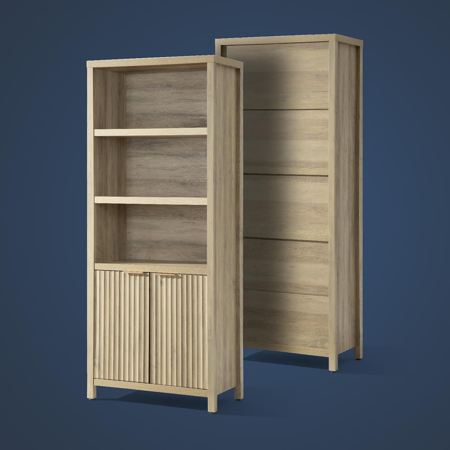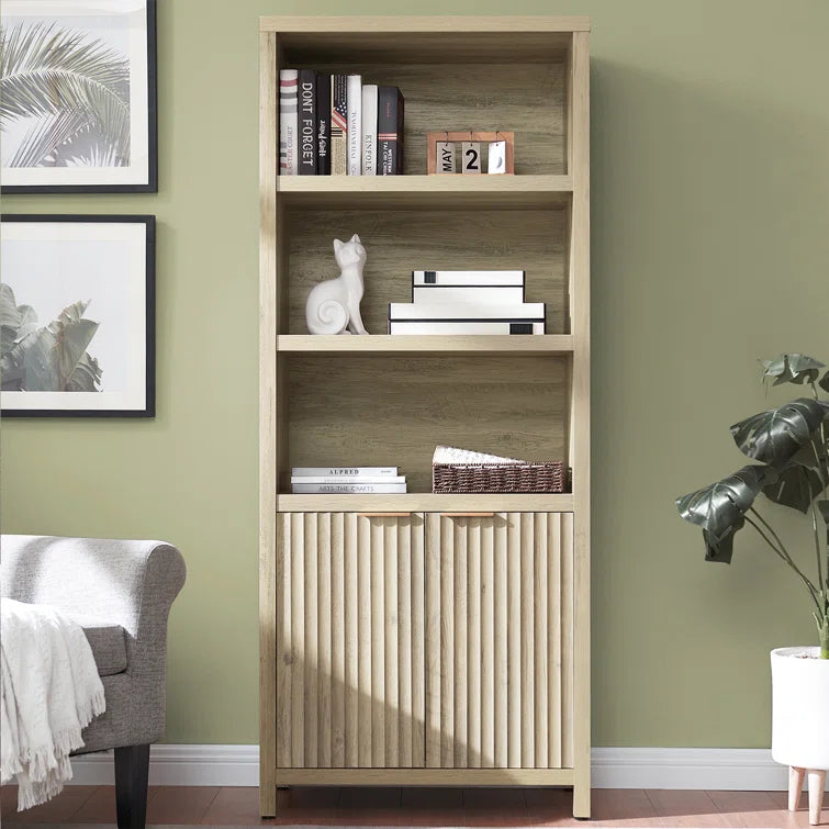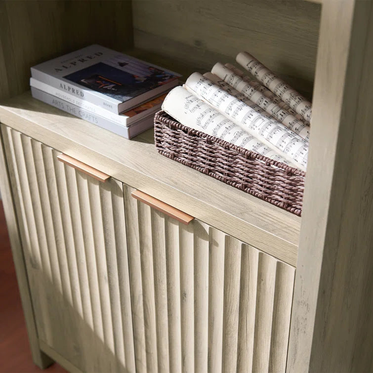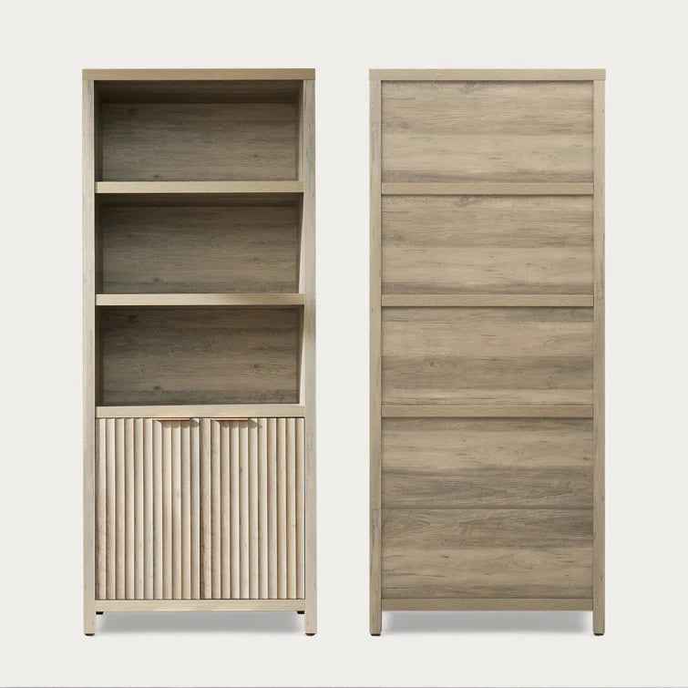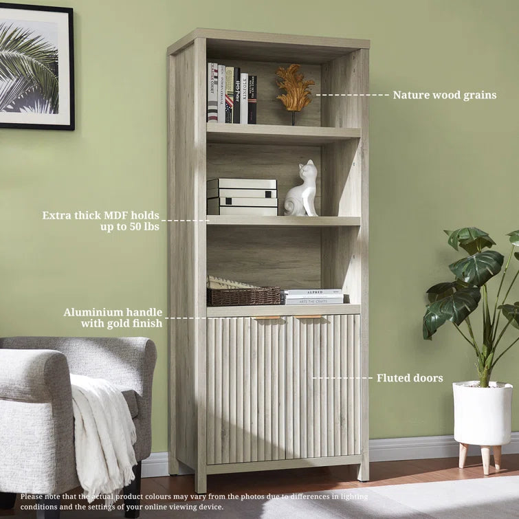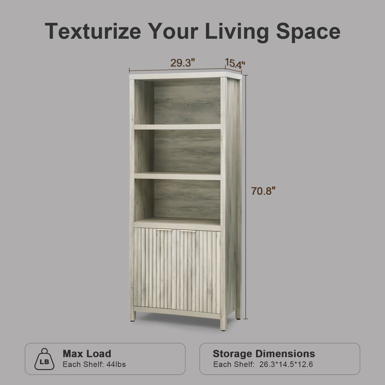 Wooden Fluted 5-Tier Tall Bookcase Cabinet with Doors