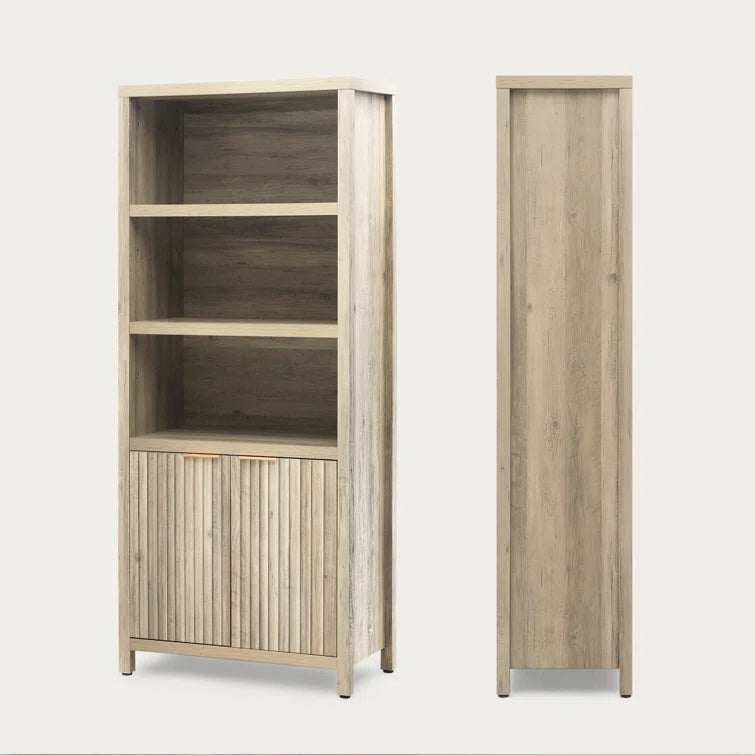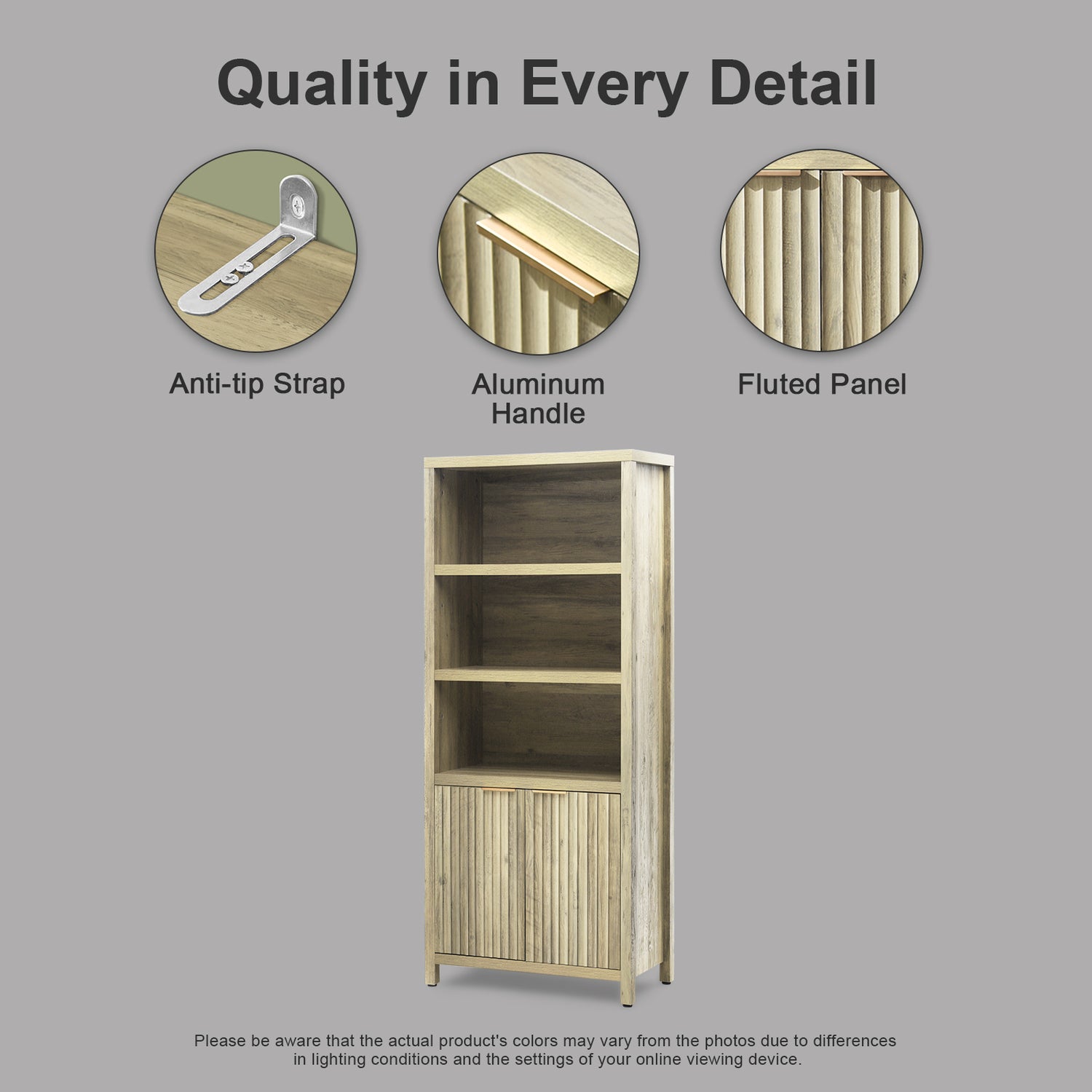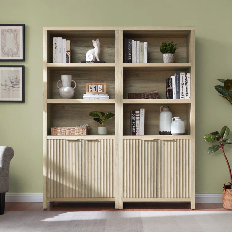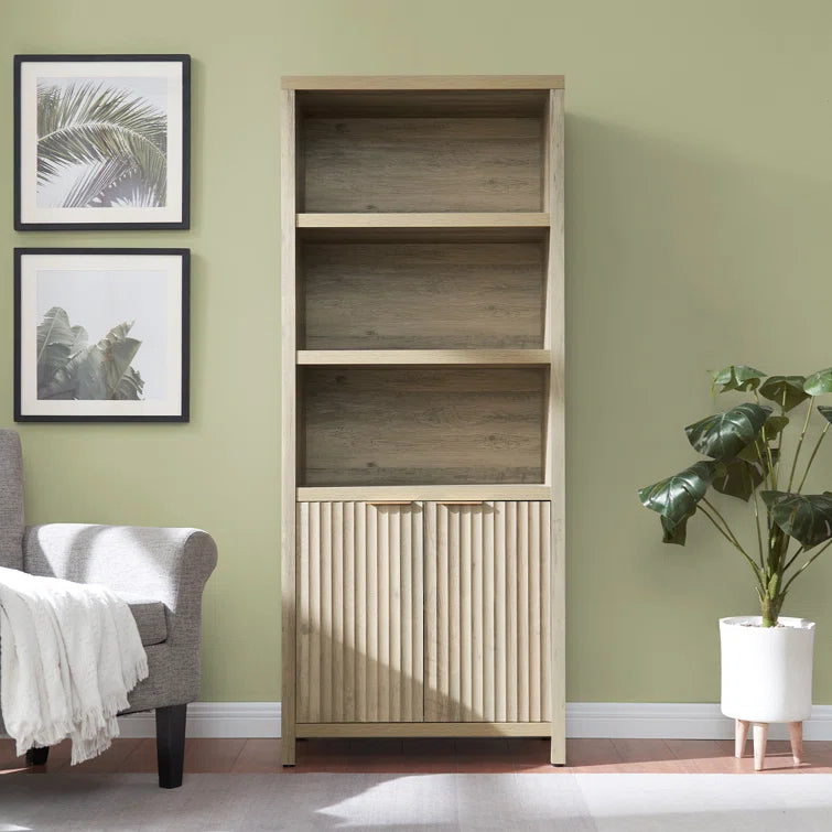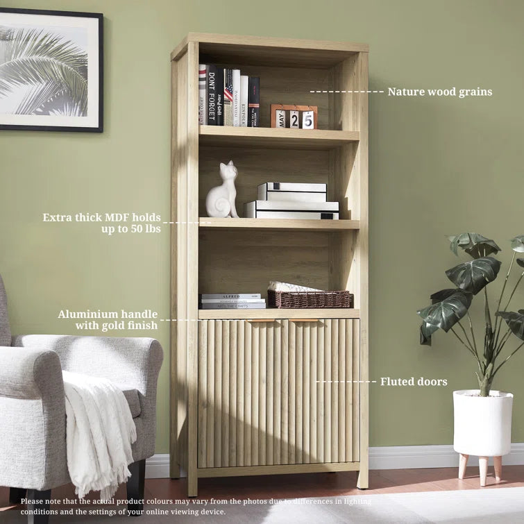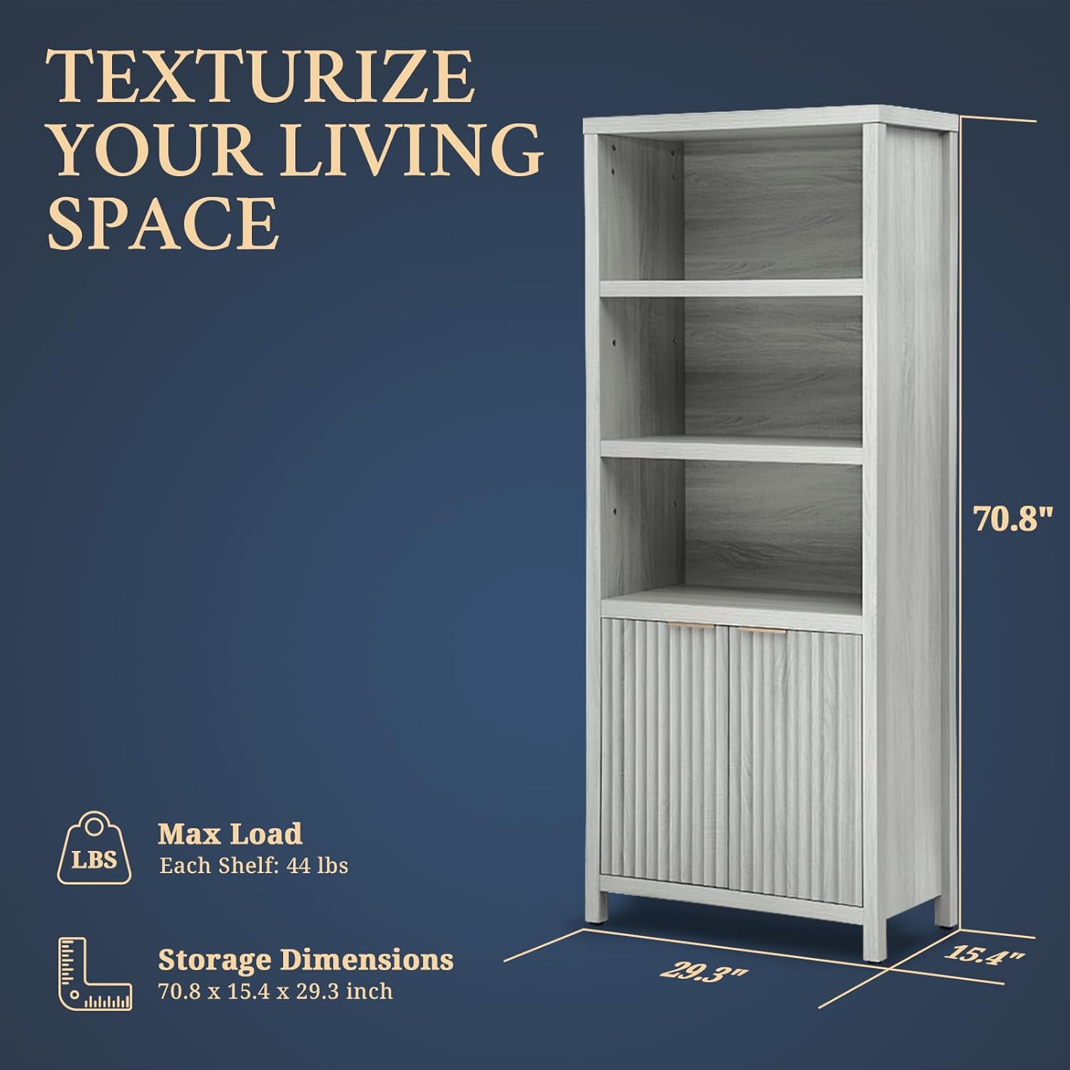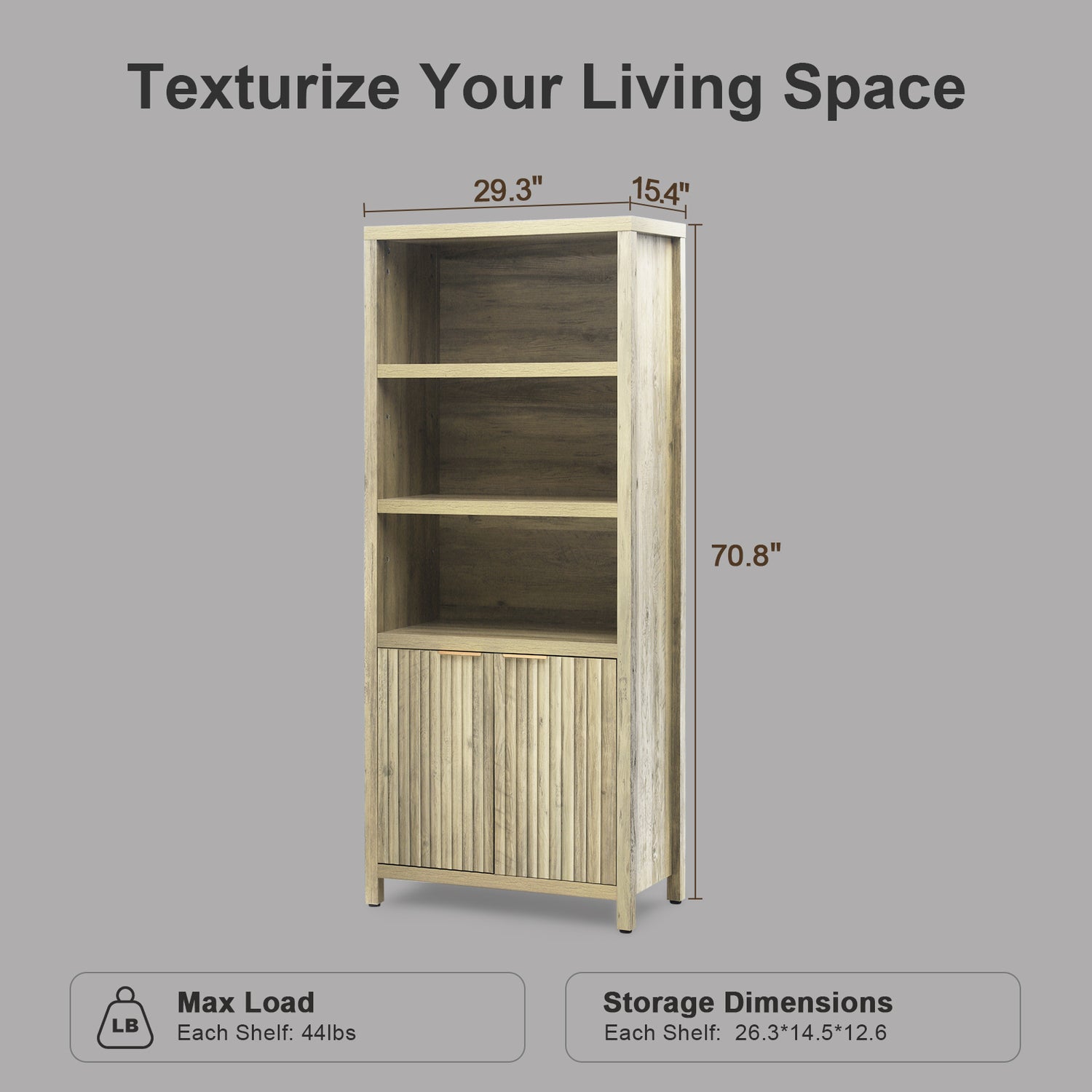 Wooden Fluted 5-Tier Tall Bookcase Cabinet with Doors
