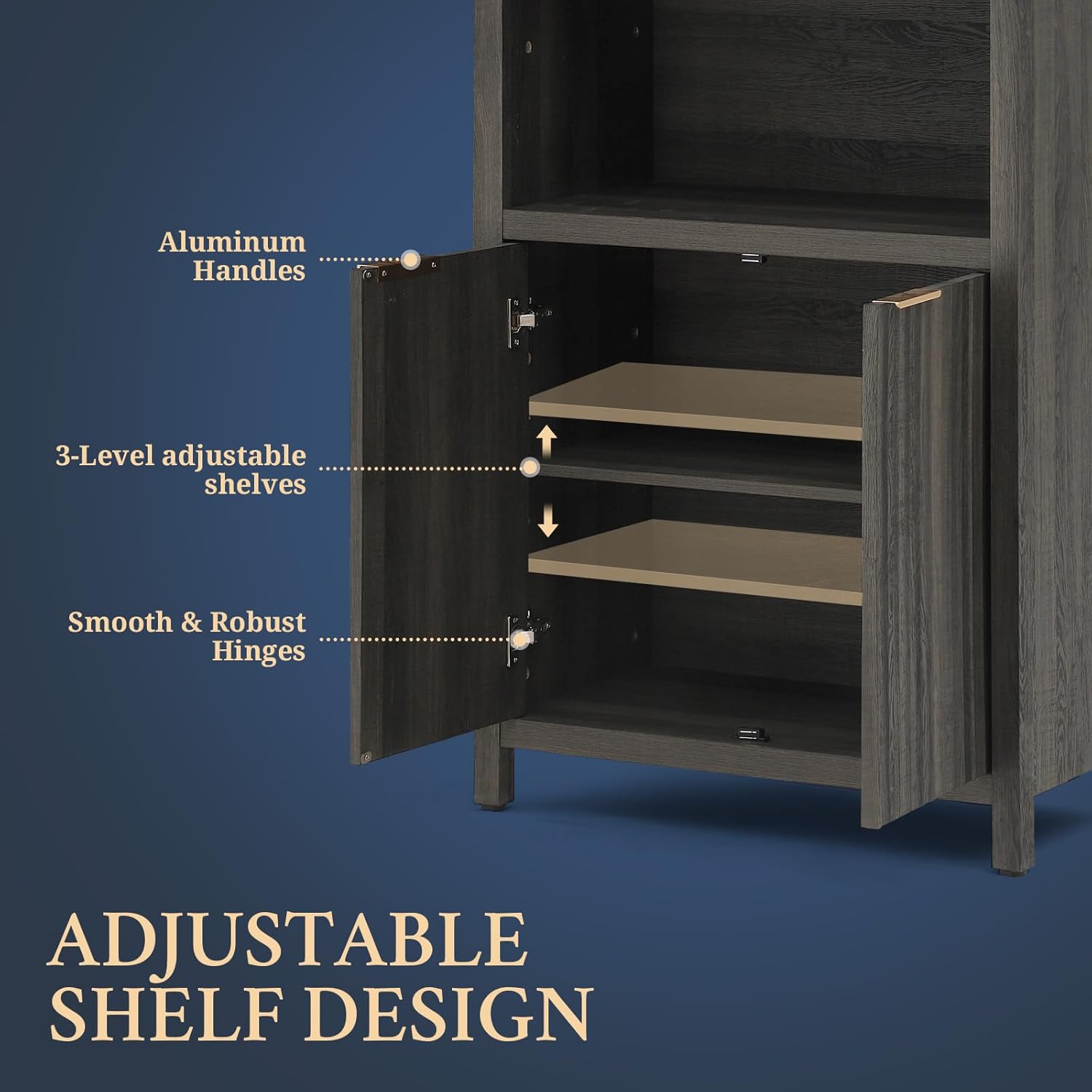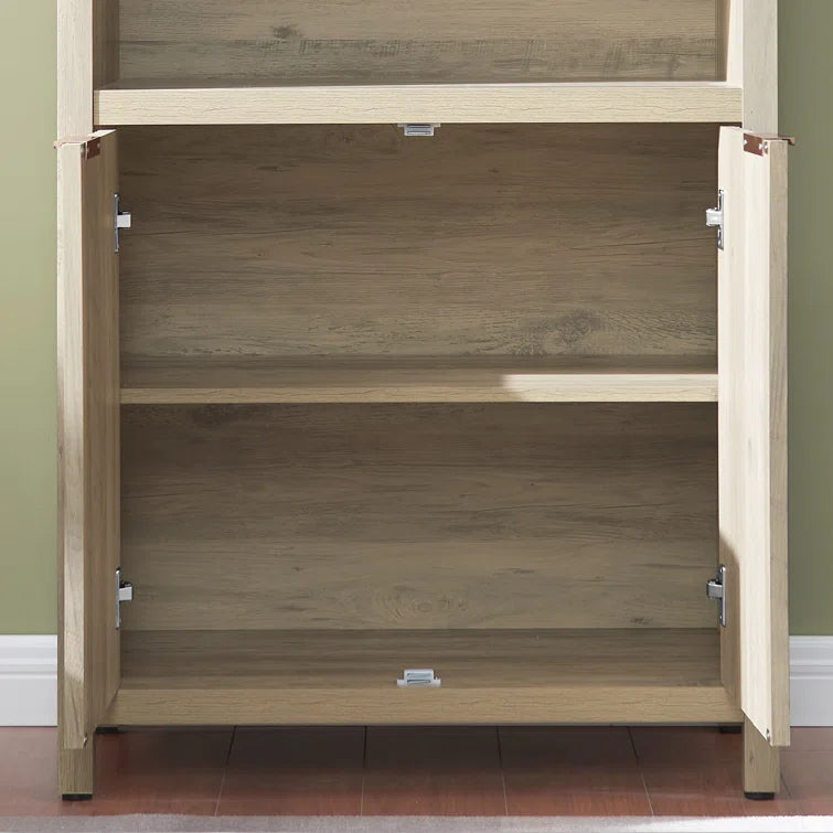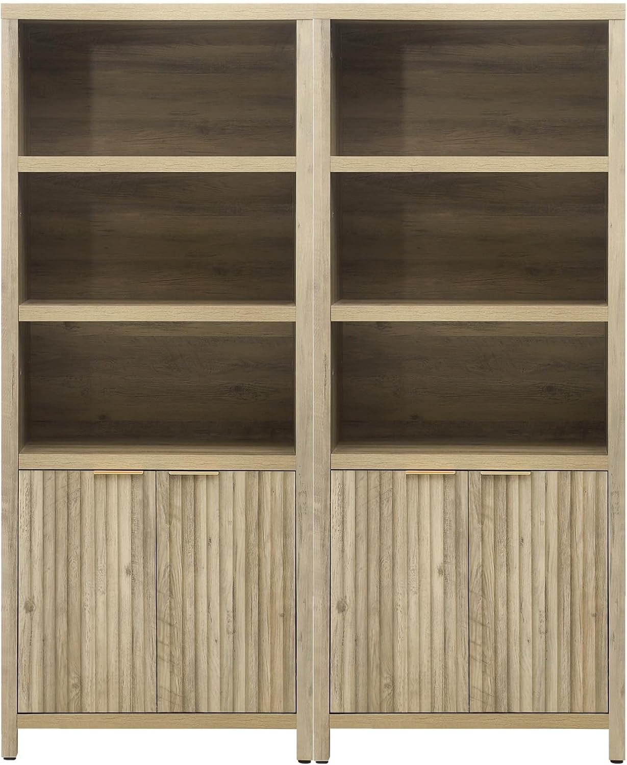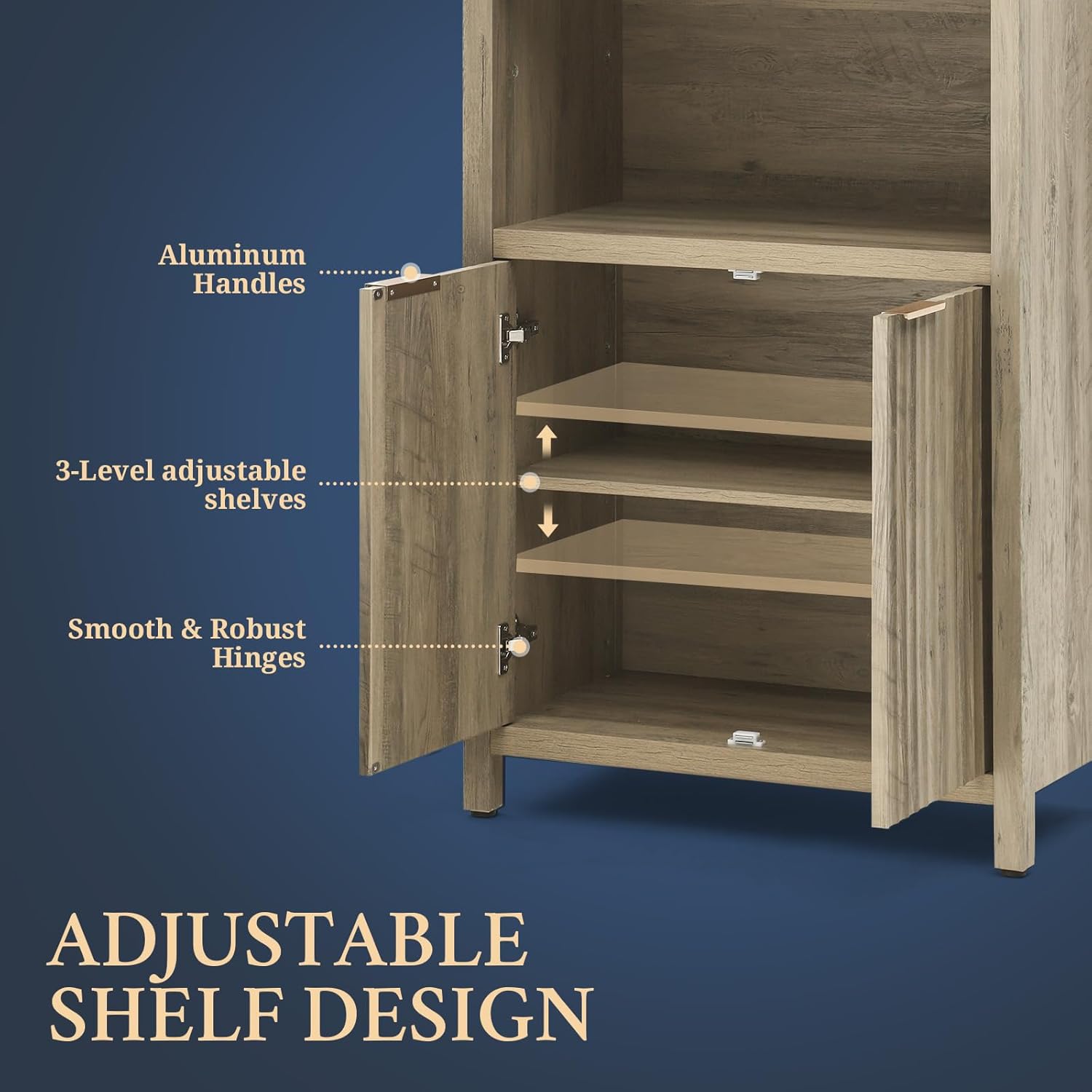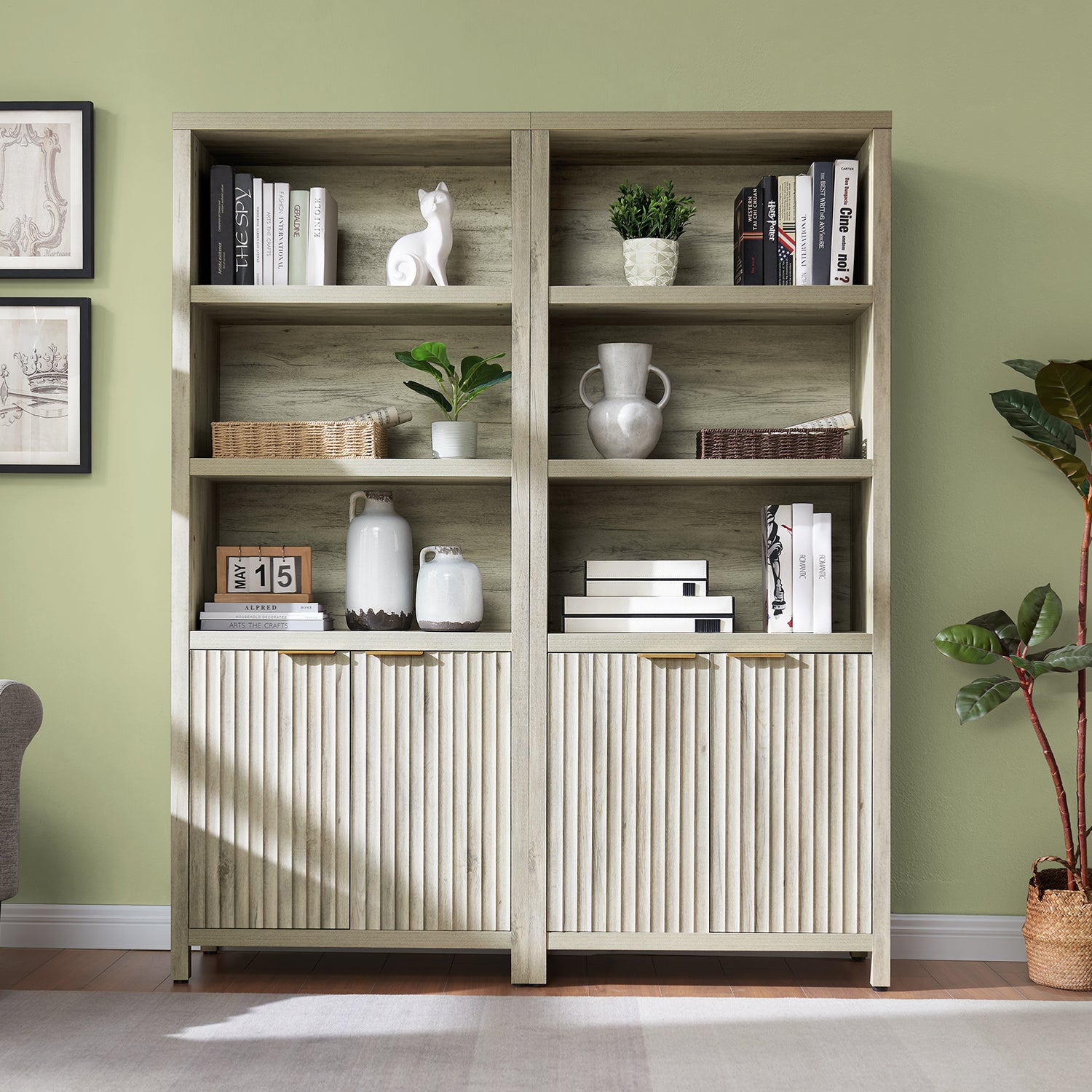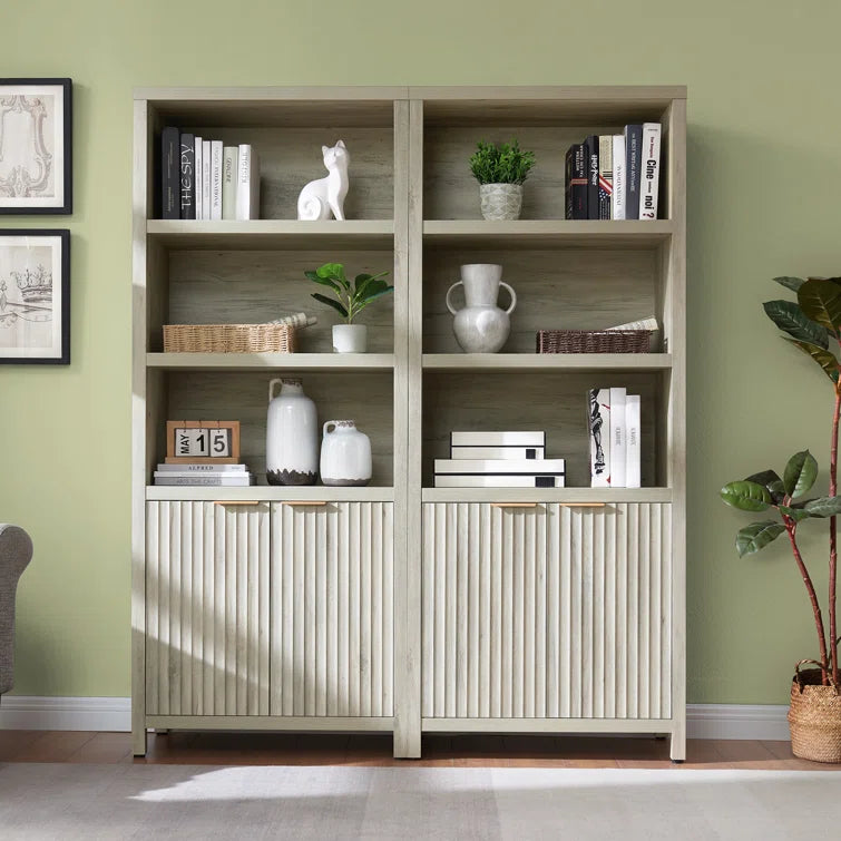 Wooden Fluted 5-Tier Tall Bookcase Cabinet with Doors