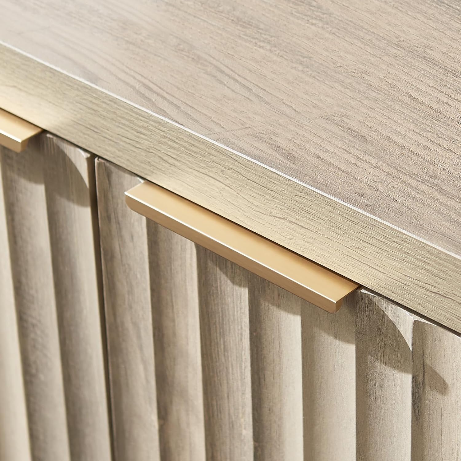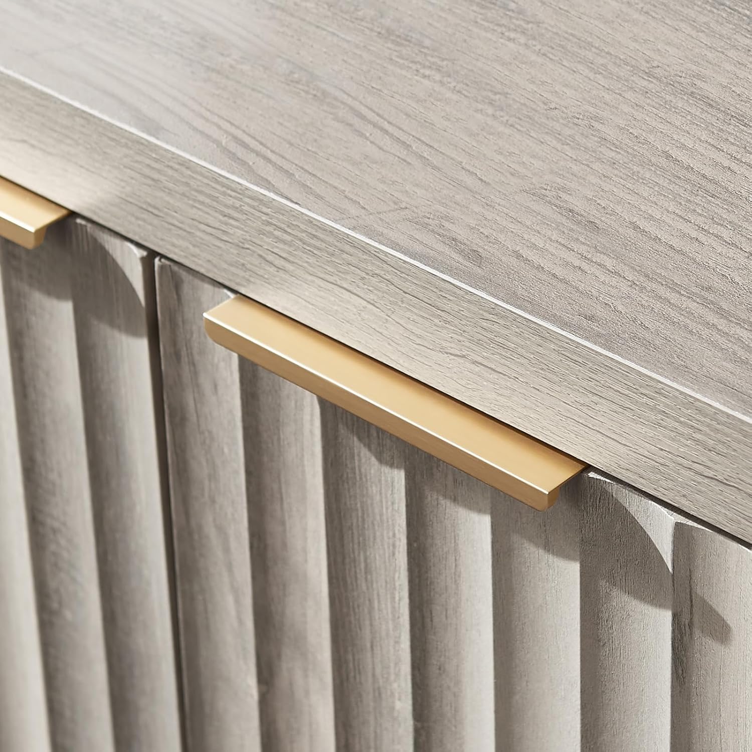 The wave panel design draws on the fluid beauty of nature, capturing the soft yet powerful rhythm of natural elements. Featuring durable rose gold aluminum handles, this bookcase combines the elegance of nature with enduring strength, adding a lasting and sophisticated accent to any space.