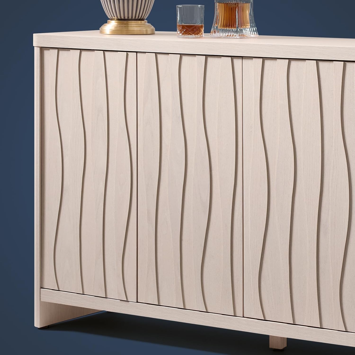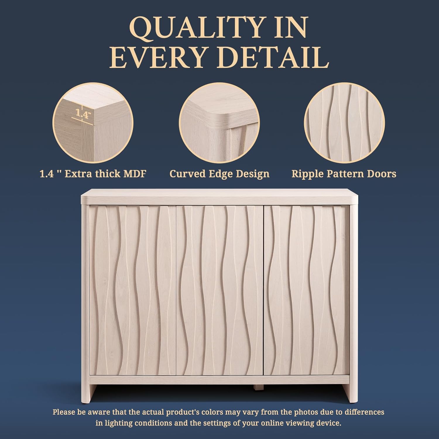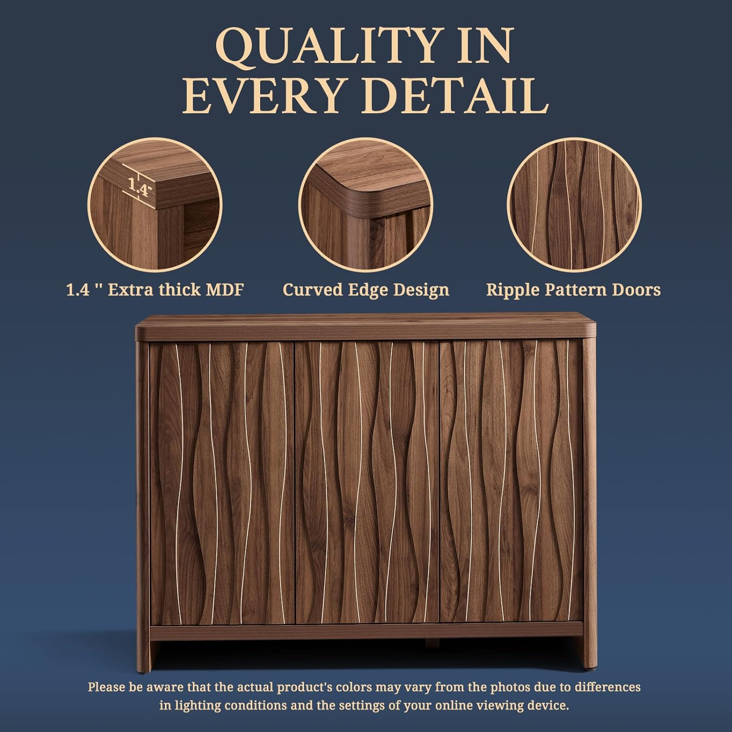 This sideboard storage cabinet is made from 1.4-inch thick external grade MDF material, with a sturdy base to ensure long-term stability and durability. Inside the doors, it features 3 height-adjustable shelves, allowing you to customize your storage space.