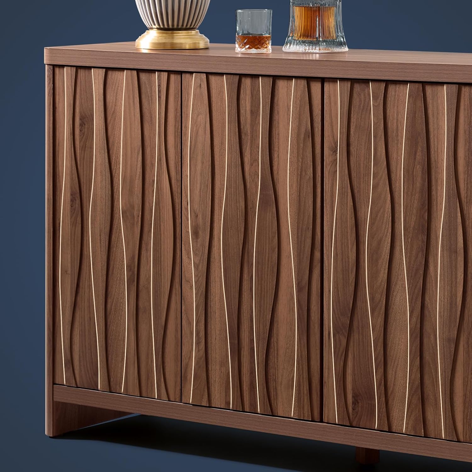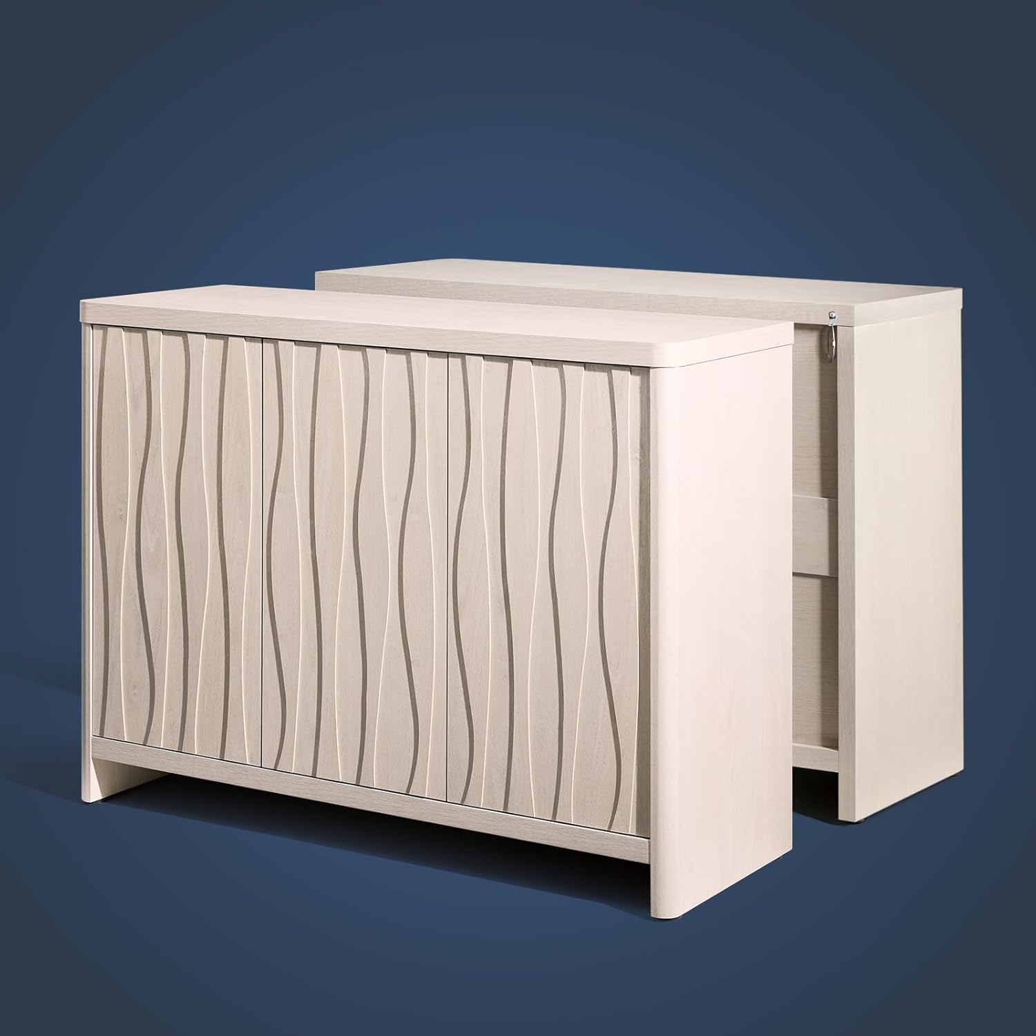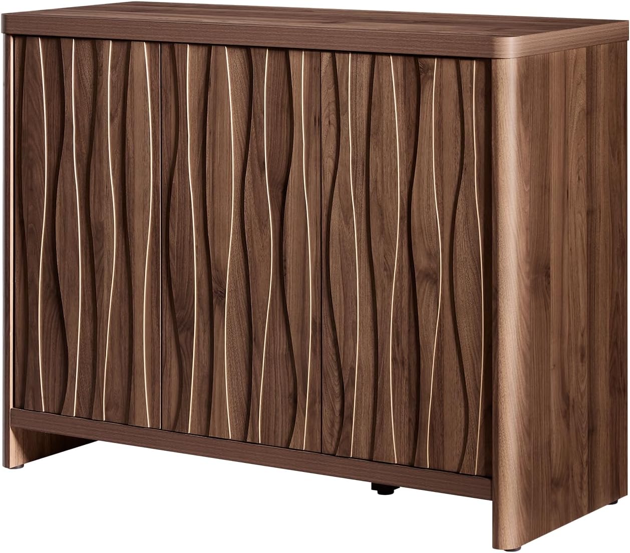 Wooden Wave Pattern 3-Door Storage Cabinet
