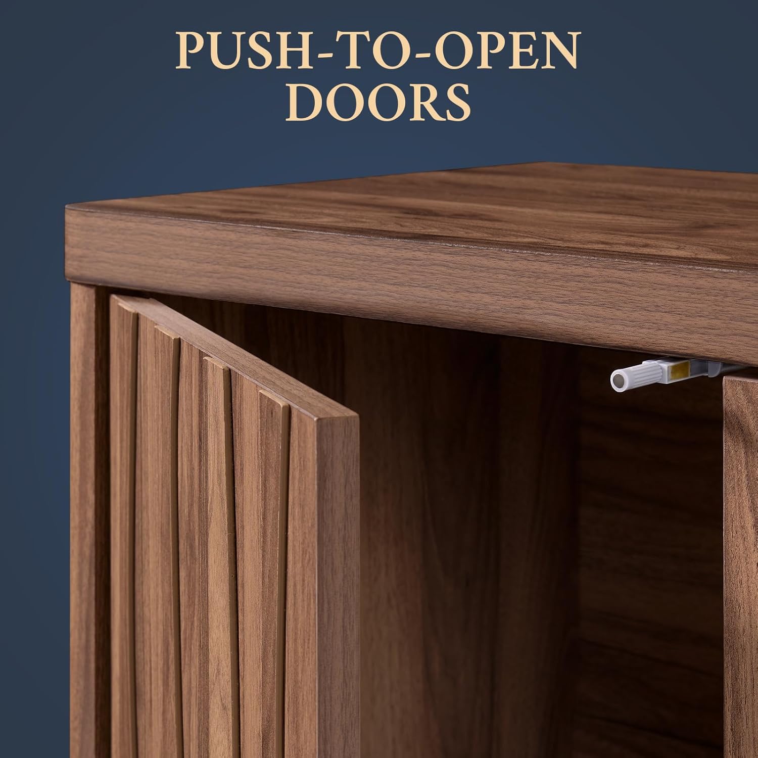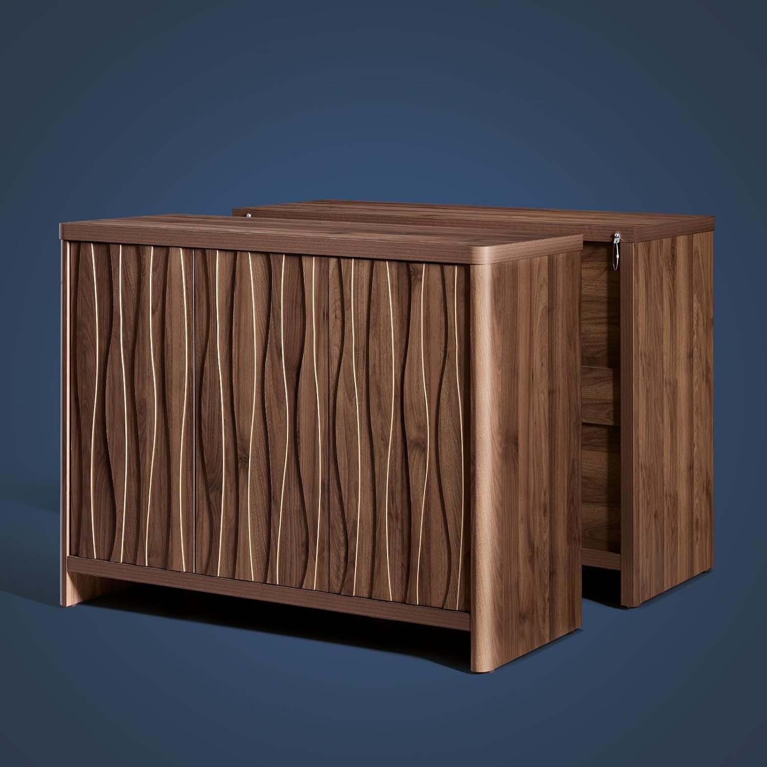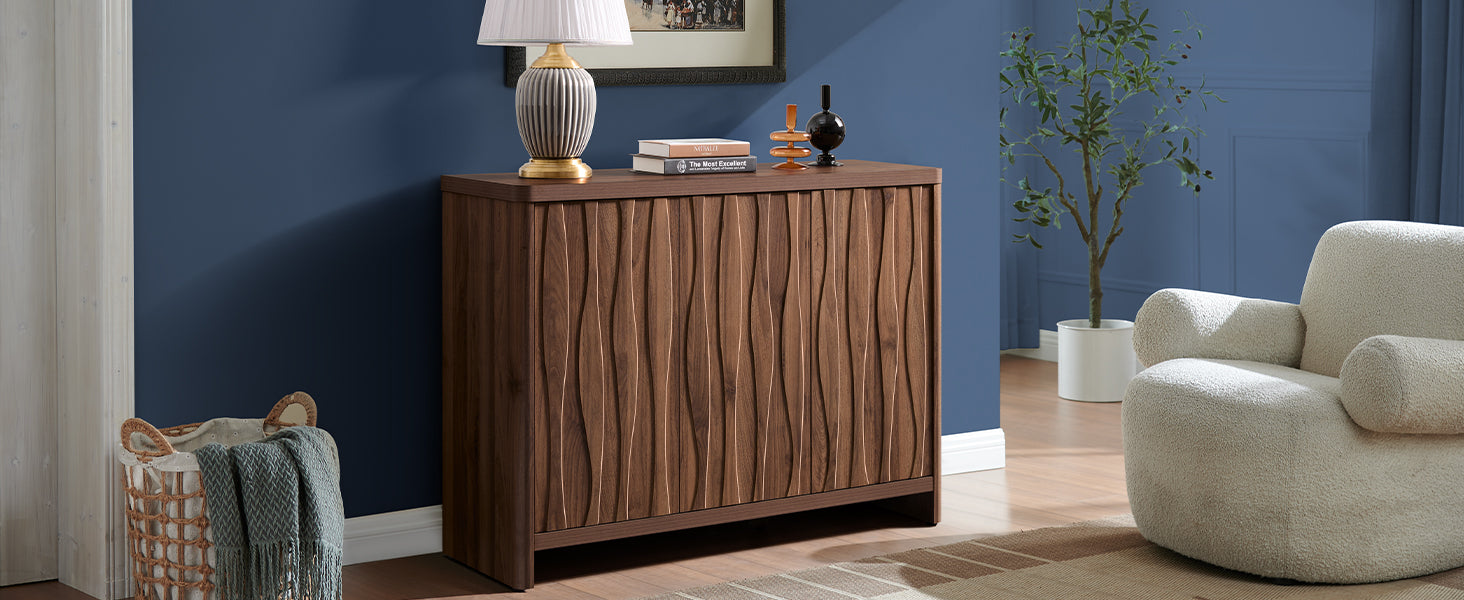 Wooden Wave Pattern 3-Door Storage Cabinet