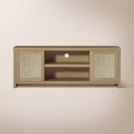 Rattan 65-Inch TV Stand with 2-Door Storage