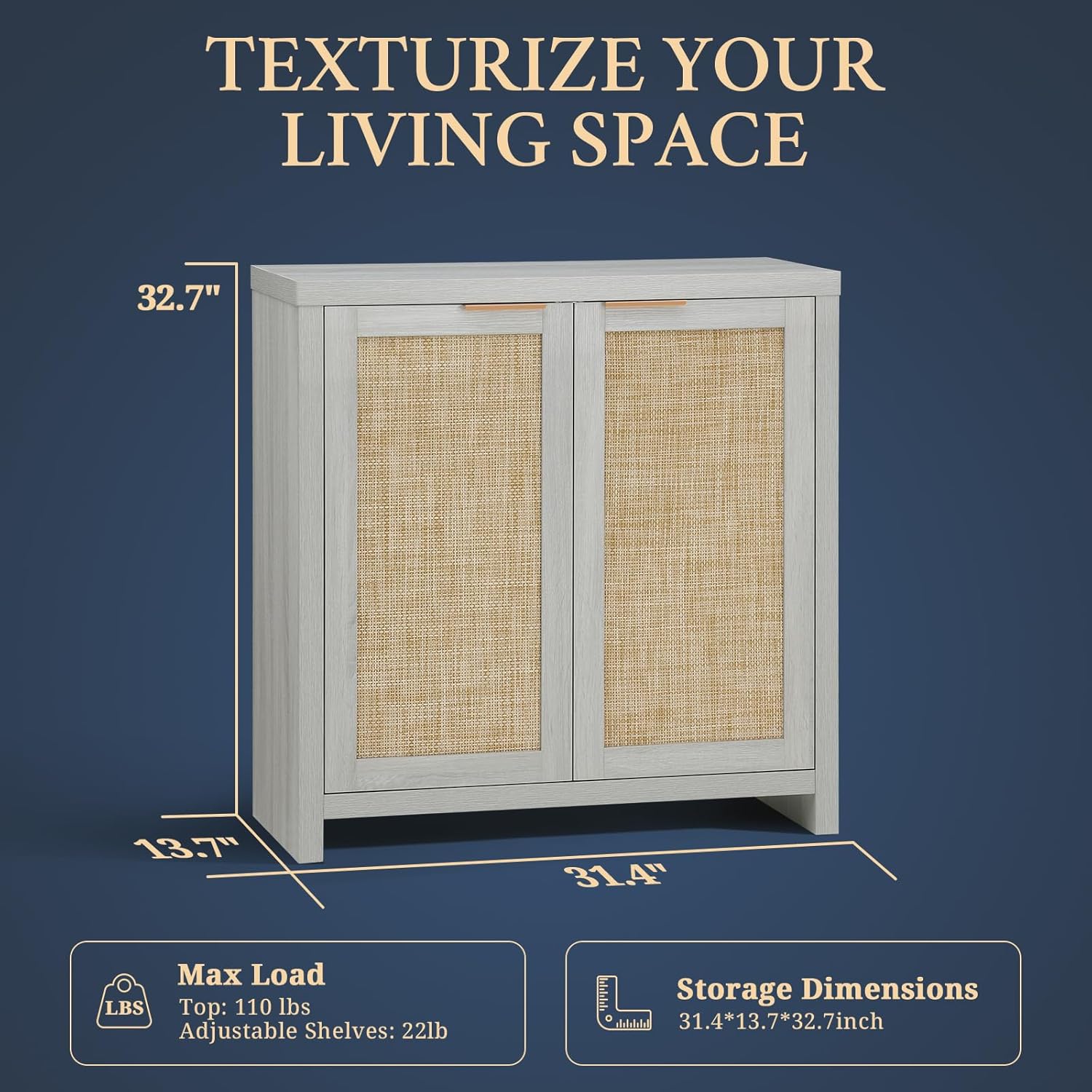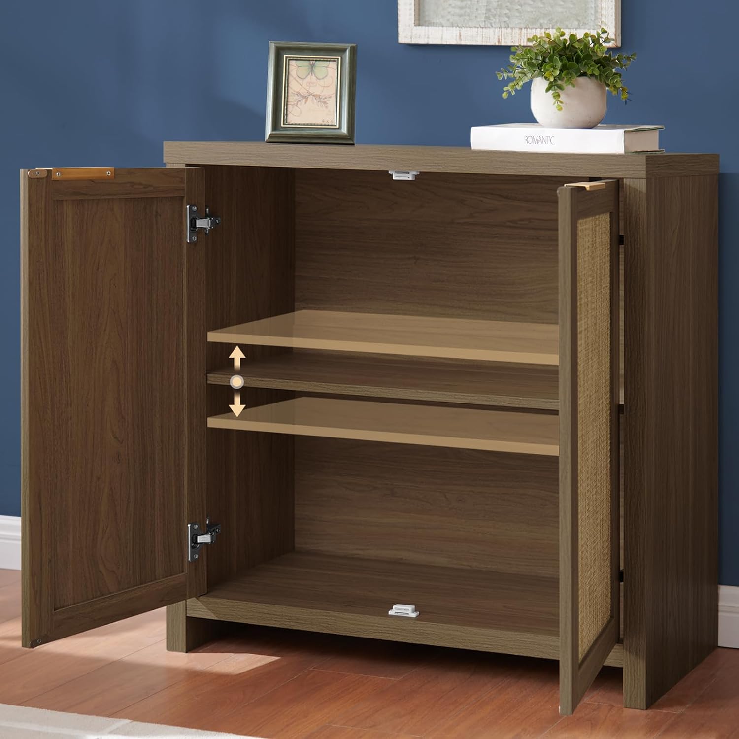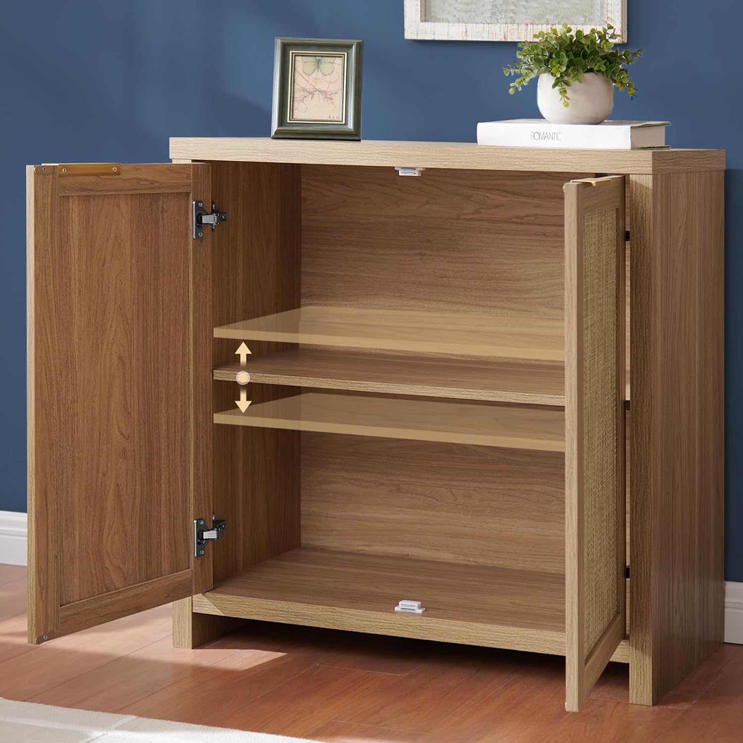 This cabinet exceeded my expectations! It’s not only a beautiful piece but also provides a lot of practical storage. I’ve used it for kitchen storage, and it works perfectly to keep things organized. The rattan detailing adds so much character to the piece. It’s a great addition to my home!