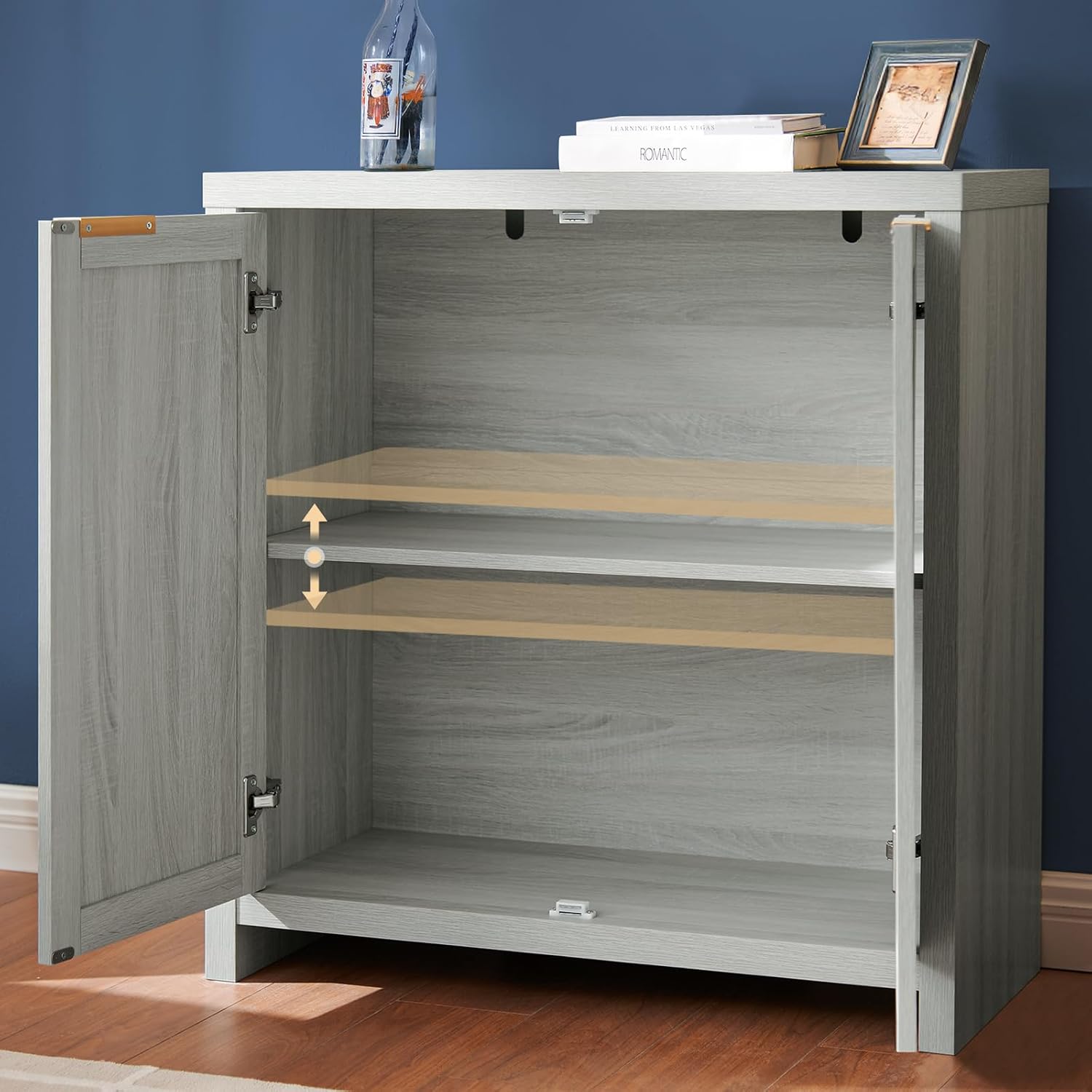 The interior adjustable shelves come in three height options to customize your storage experience, and the two buffets feature rattan doors and sleek gold knobs for an easy blend of modern and farmhouse style!