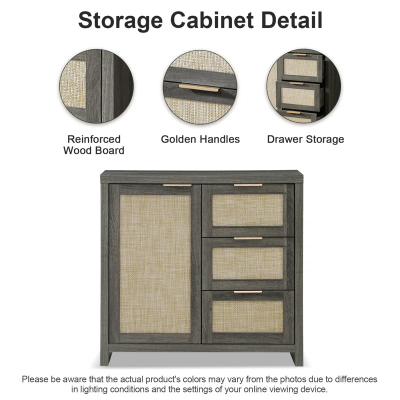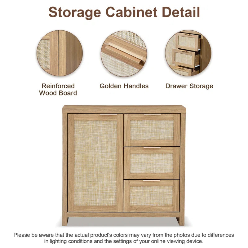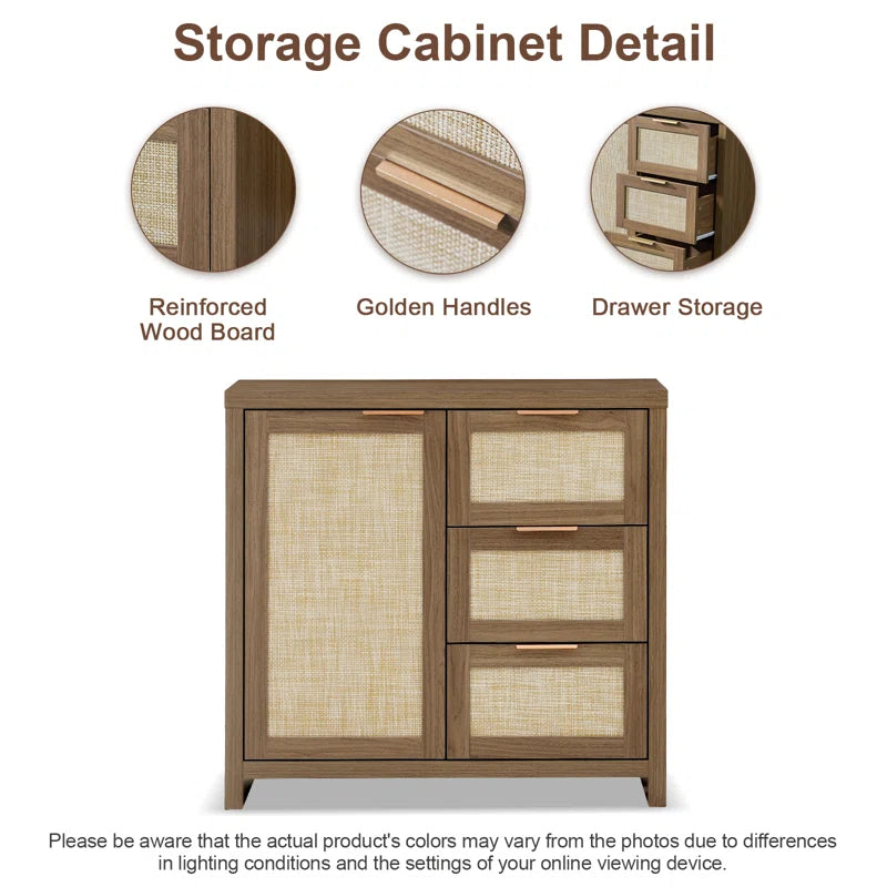 Rattan 3-Drawer 1-Door Storage Cabinet