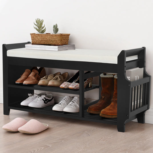 Bamboo Shoe Storage Bench with Hidden Drawer and Side Holder