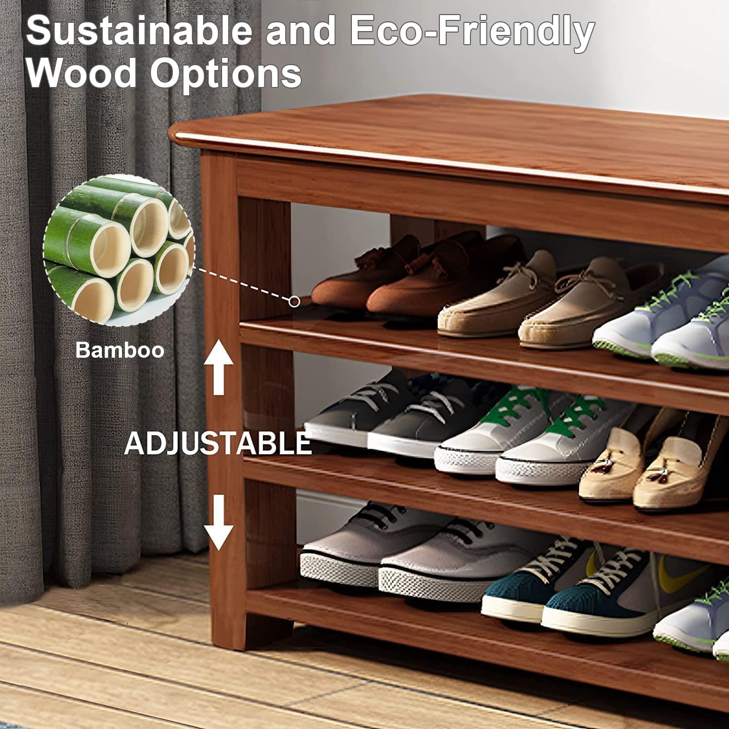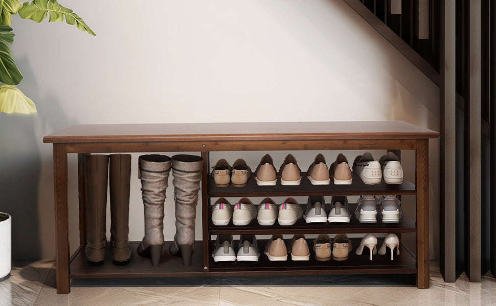 Our entry shoe rack is made of sturdy bamboo for outstanding durability and natural beauty, and the 3-tier adjustable shelf design makes it easy to adjust the shelf height to accommodate boots, sneakers, or heels, ensuring convenient, organized shoe storage.