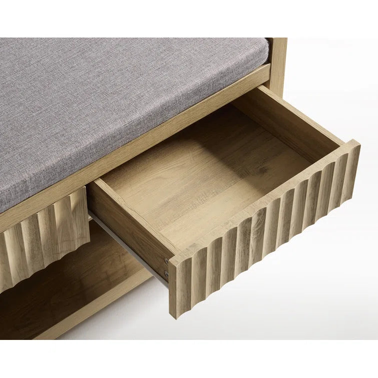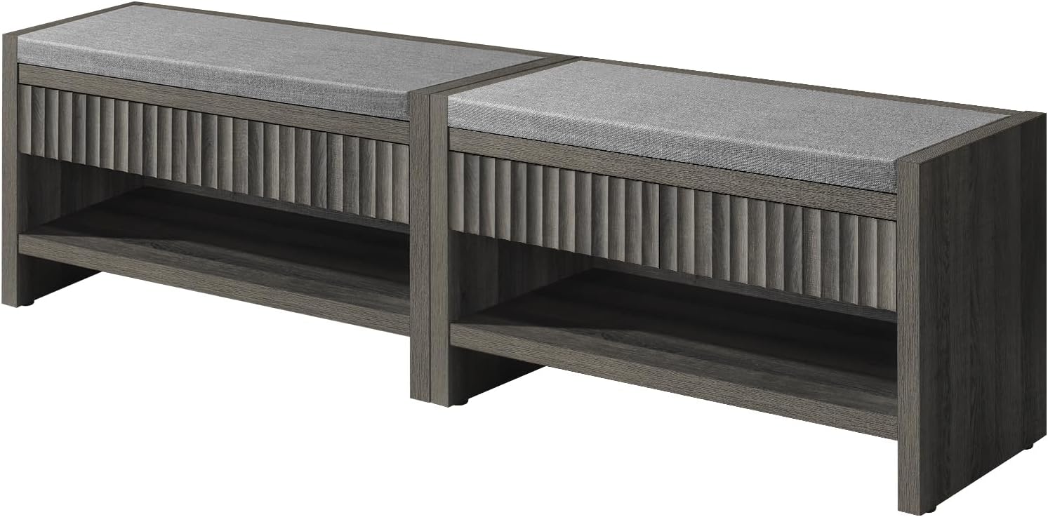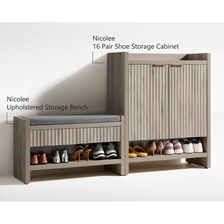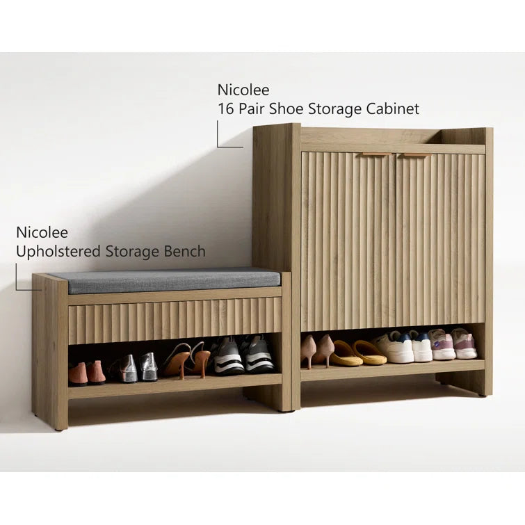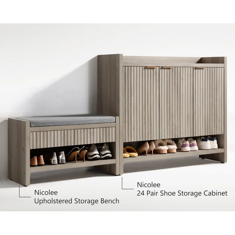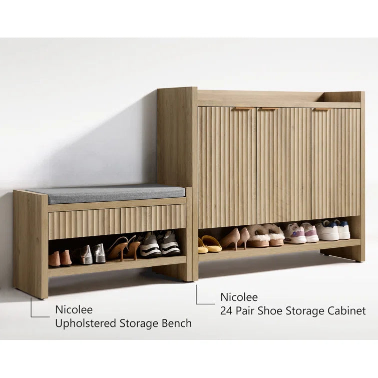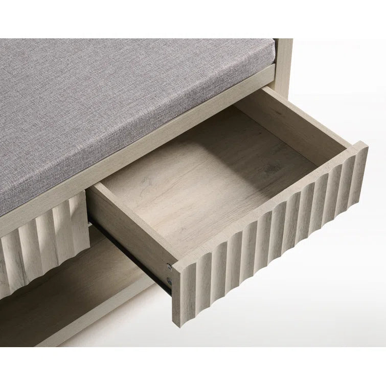 Wooden Fluted Shoe Storage Bench with 2 Drawers - Sunwashed Ash Oak / 1PC / Exterior Grade MDF Board is backordered and will ship as soon as it is back in stock.