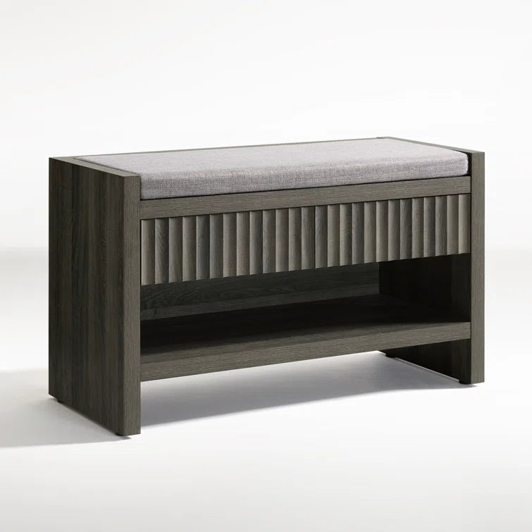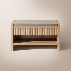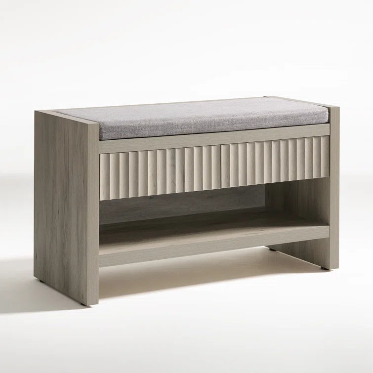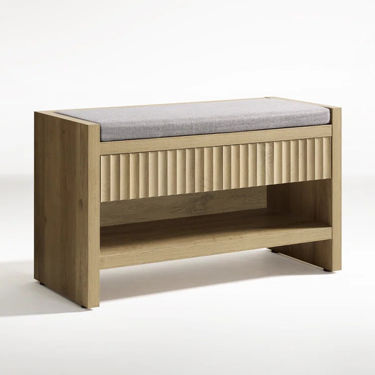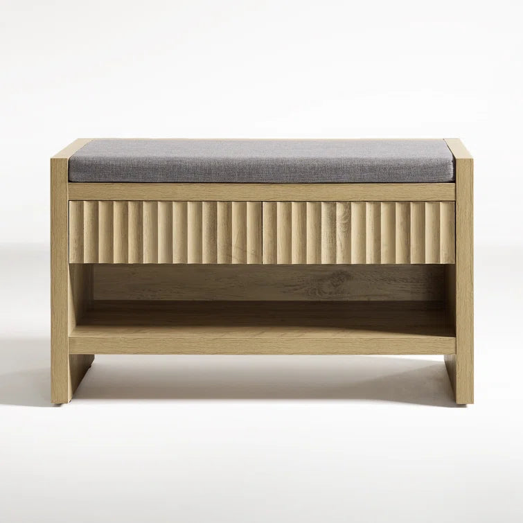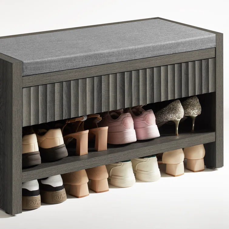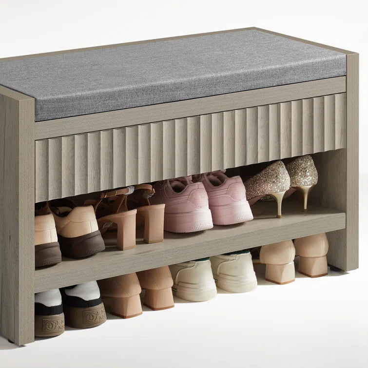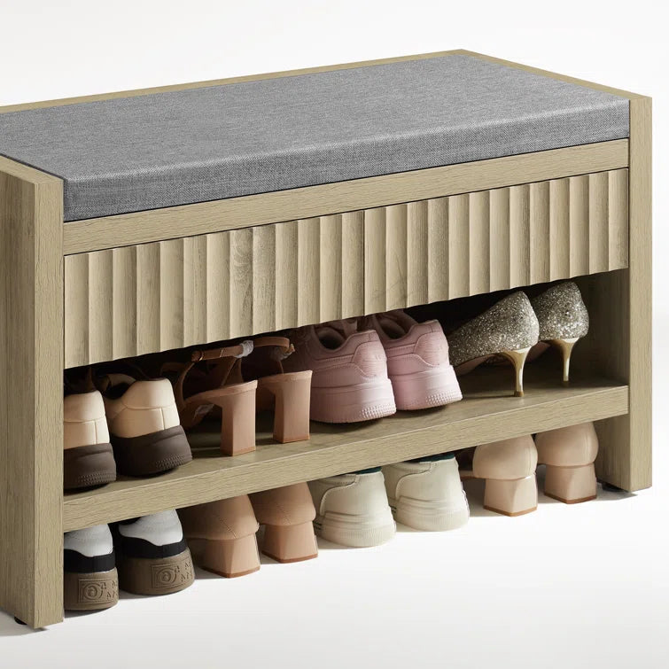 Wooden Fluted Shoe Storage Bench with 2 Drawers