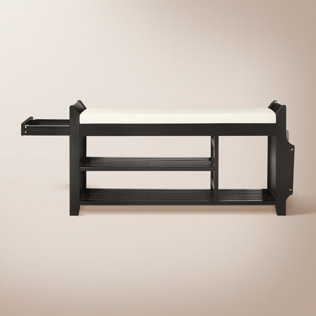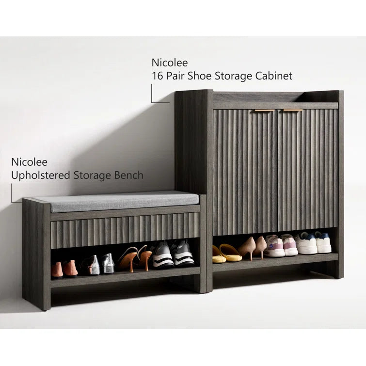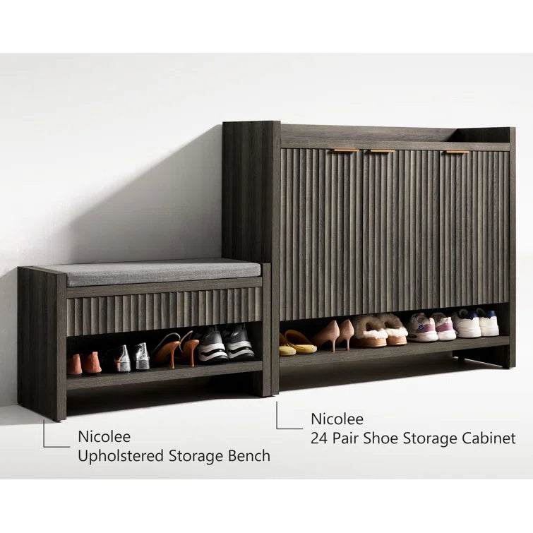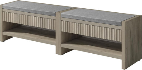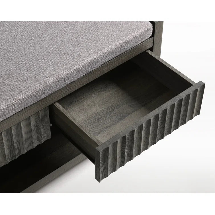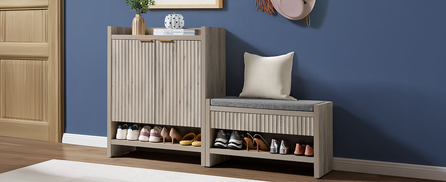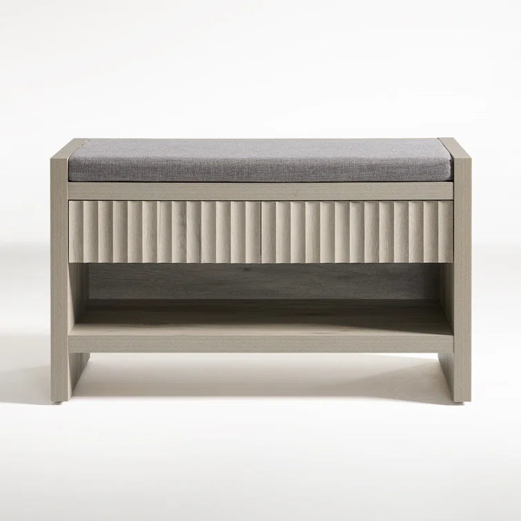 Wooden Fluted Shoe Storage Bench with 2 Drawers