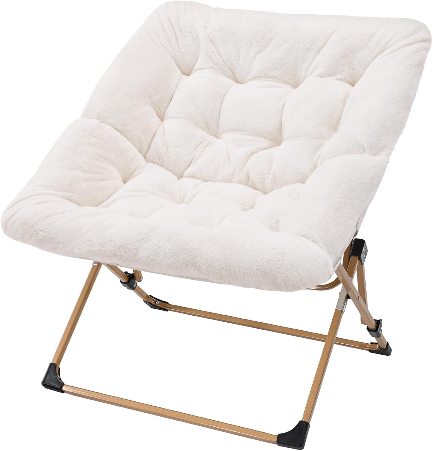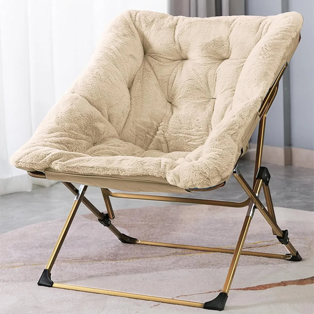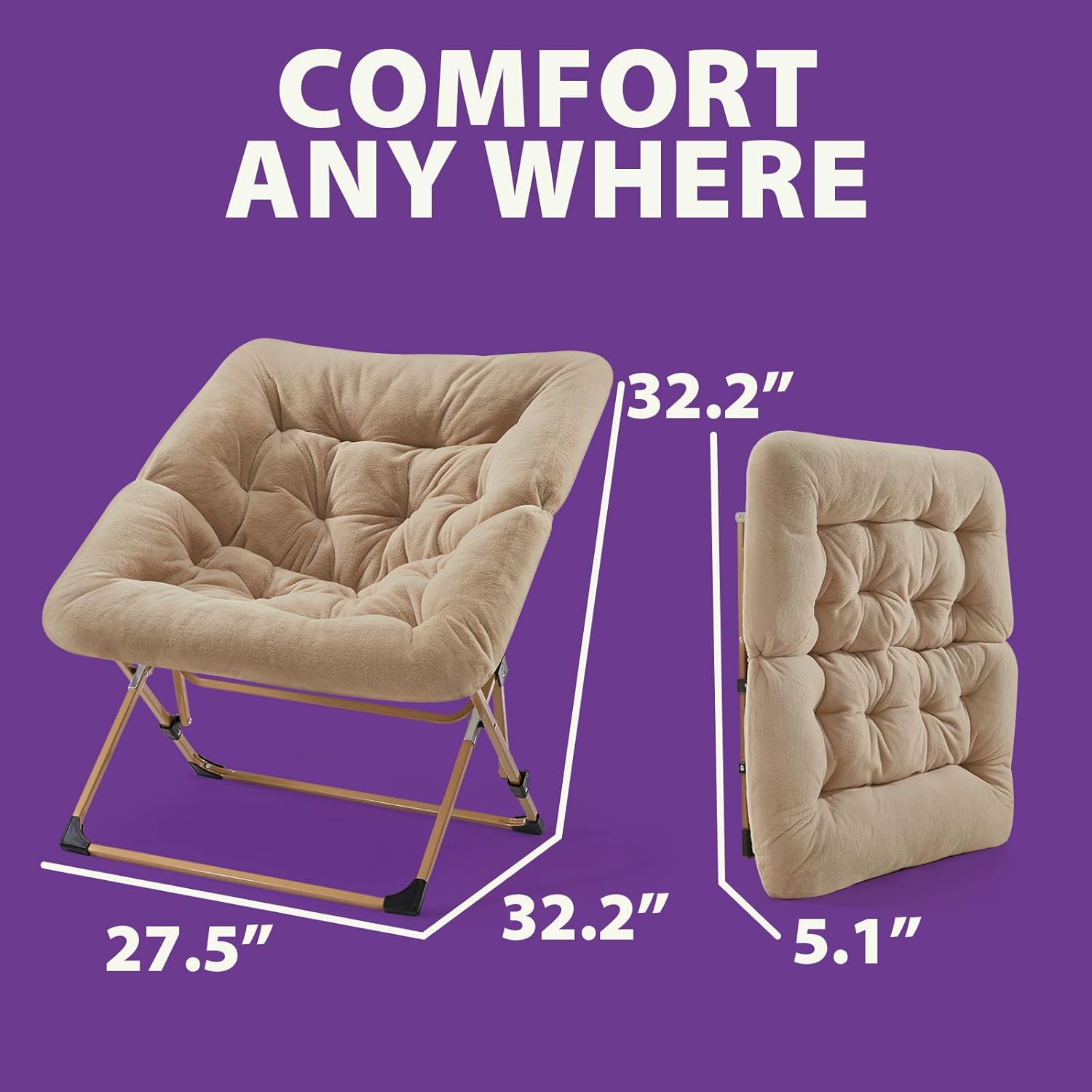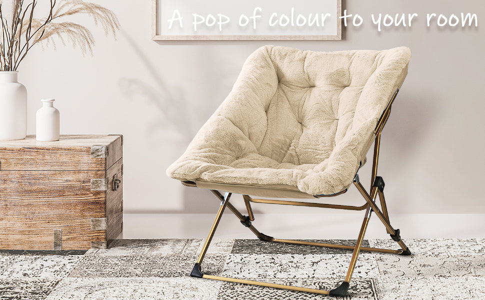 Faux Fur Foldable Comfy Saucer Chair - Pouf / Faux Fur-Beige / 1PC is backordered and will ship as soon as it is back in stock.