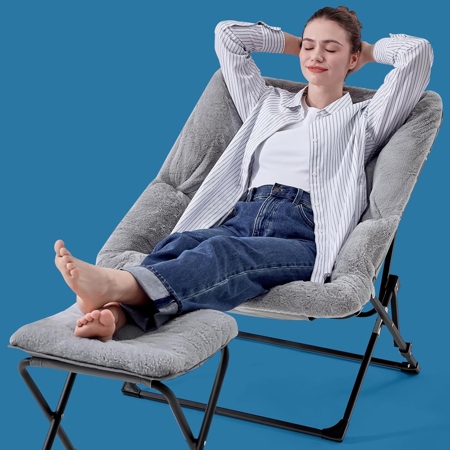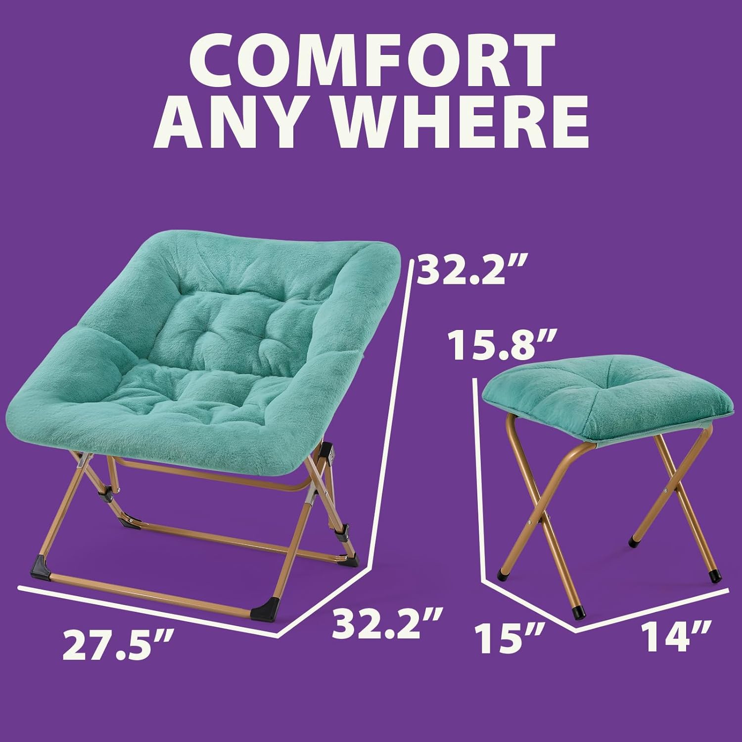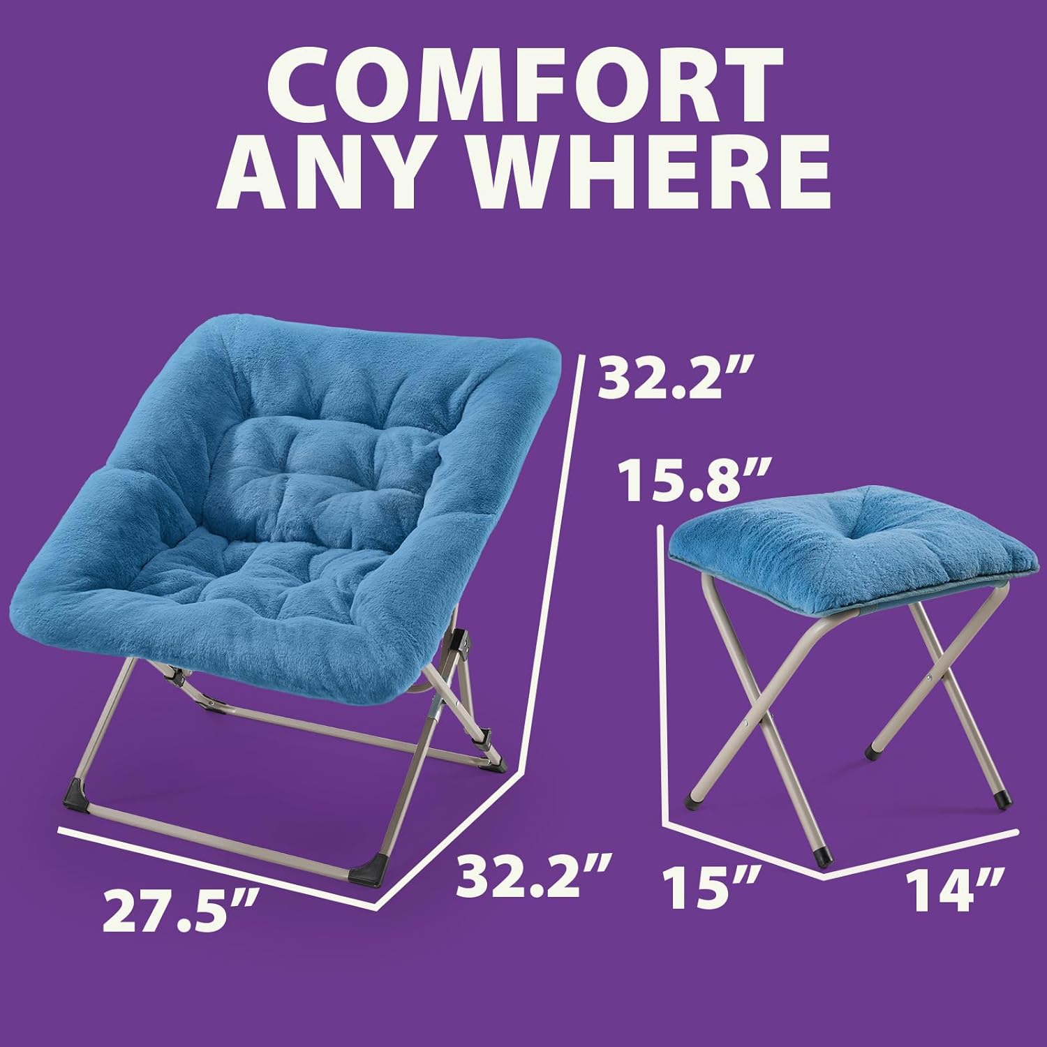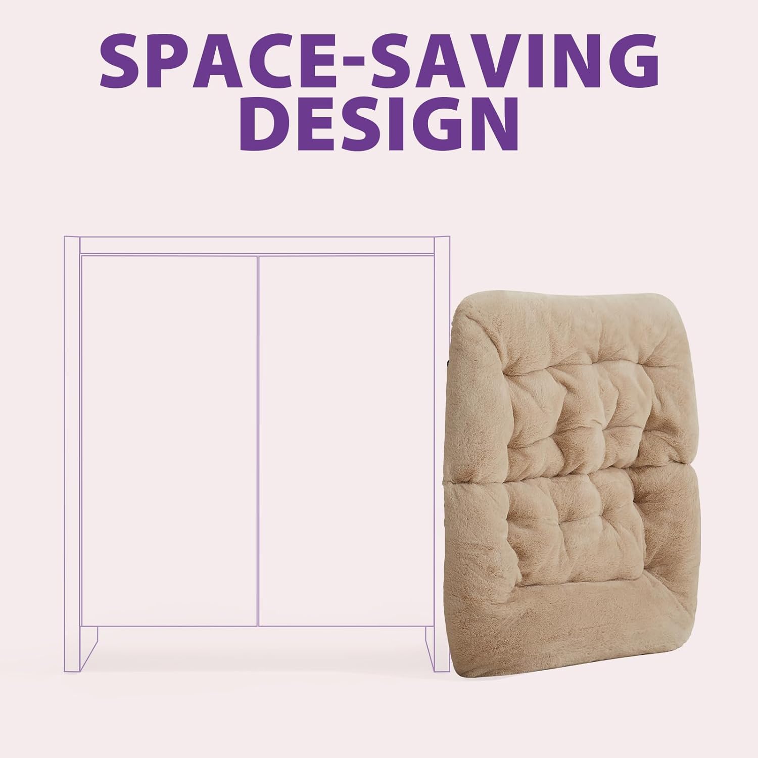 Faux Fur Foldable Comfy Saucer Chair - Pouf / Faux Fur-Beige / 1PC is backordered and will ship as soon as it is back in stock.