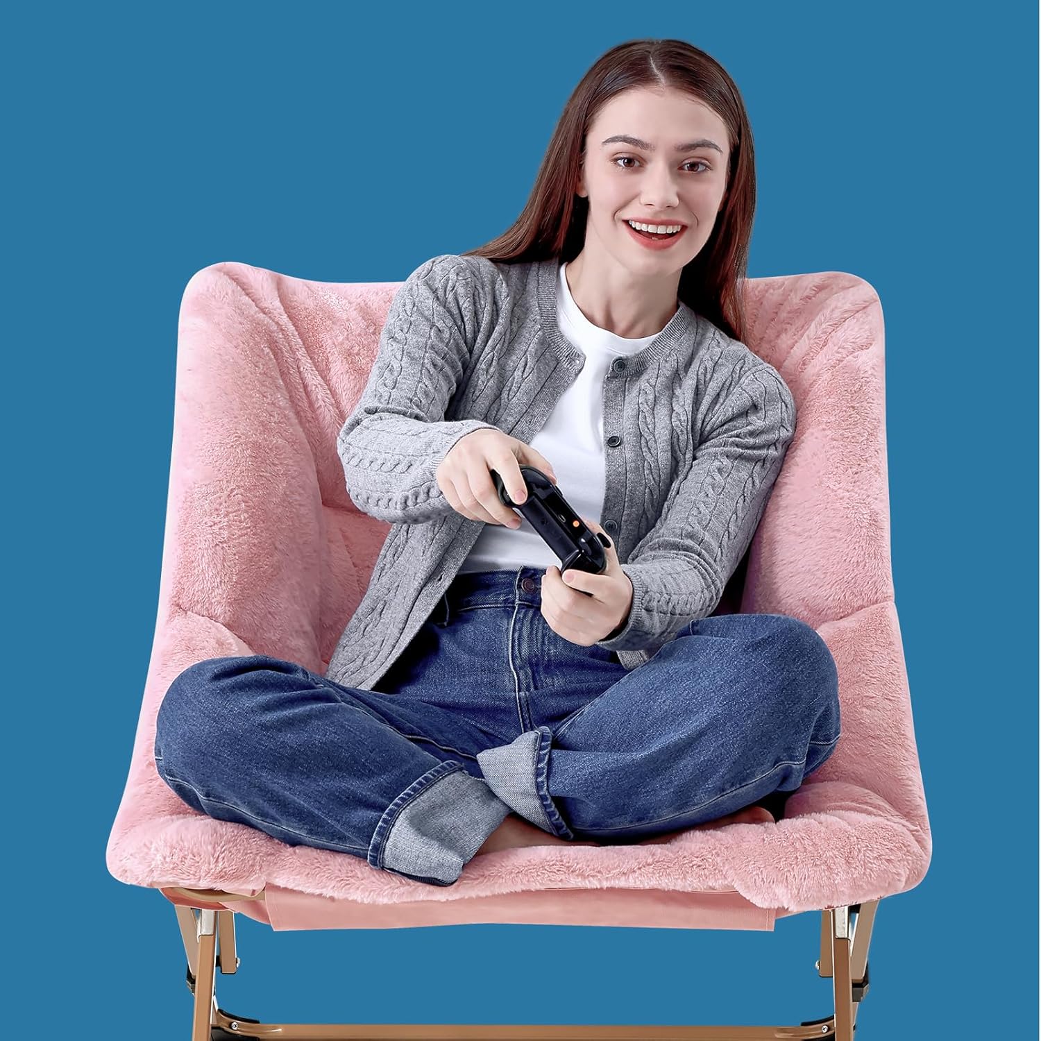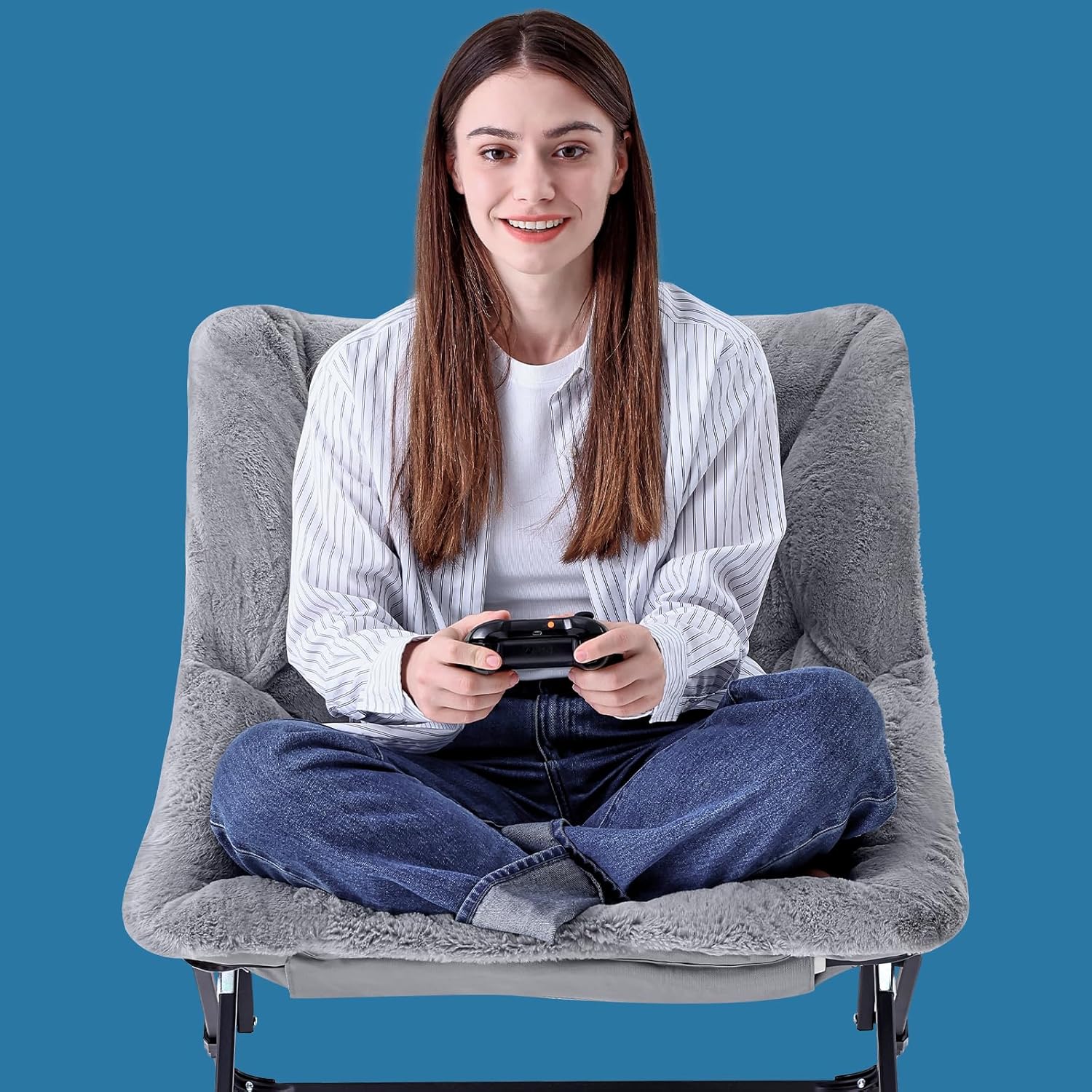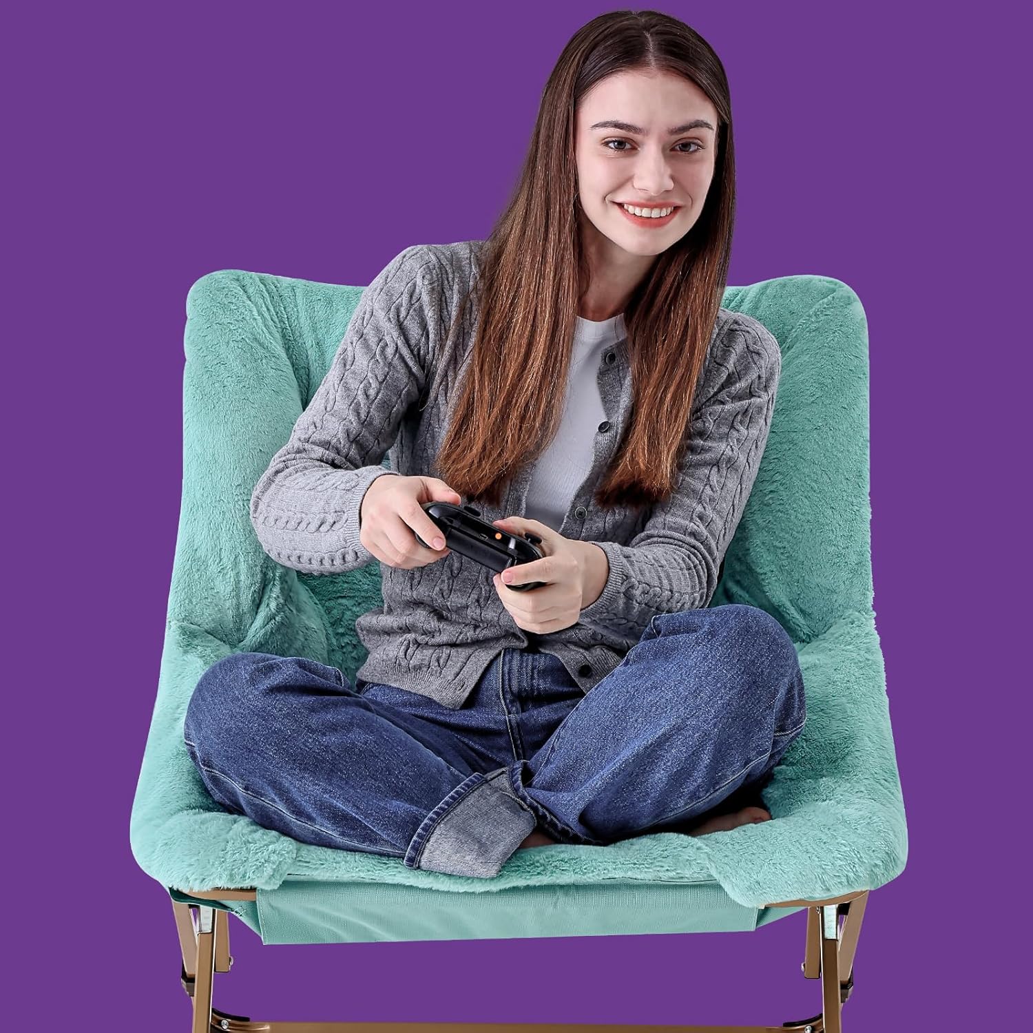 This bedroom chair is Covered in super soft faux fur, which is 95% breathable, which makes it so comfortable to relax and just enjoy the moment. The soft fabric on this cozy chair will be why you will not want to get up, In addition, you can also give it as a present to your family or friends.