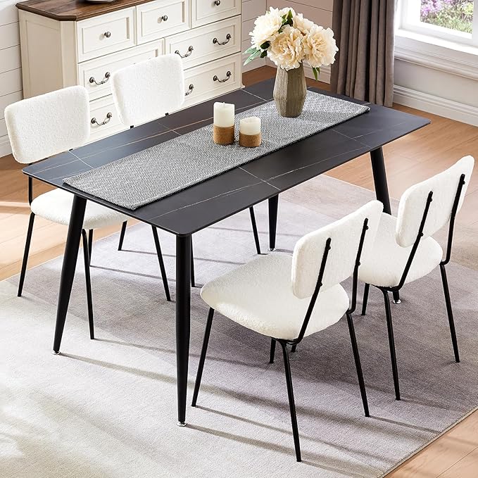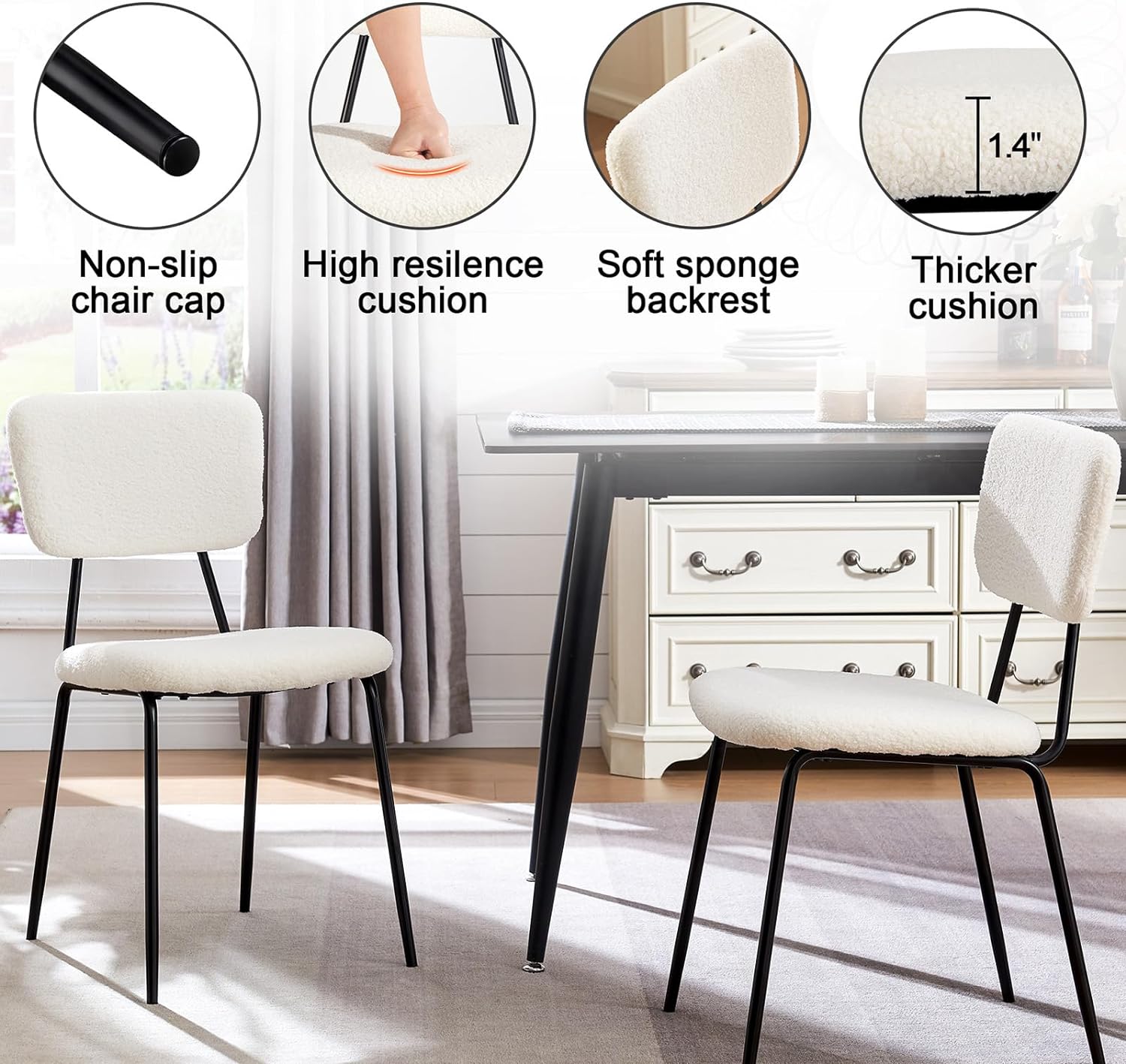 Boucle Fabric Dining Chairs Set of 4 - White / 1PC / Metal is backordered and will ship as soon as it is back in stock.