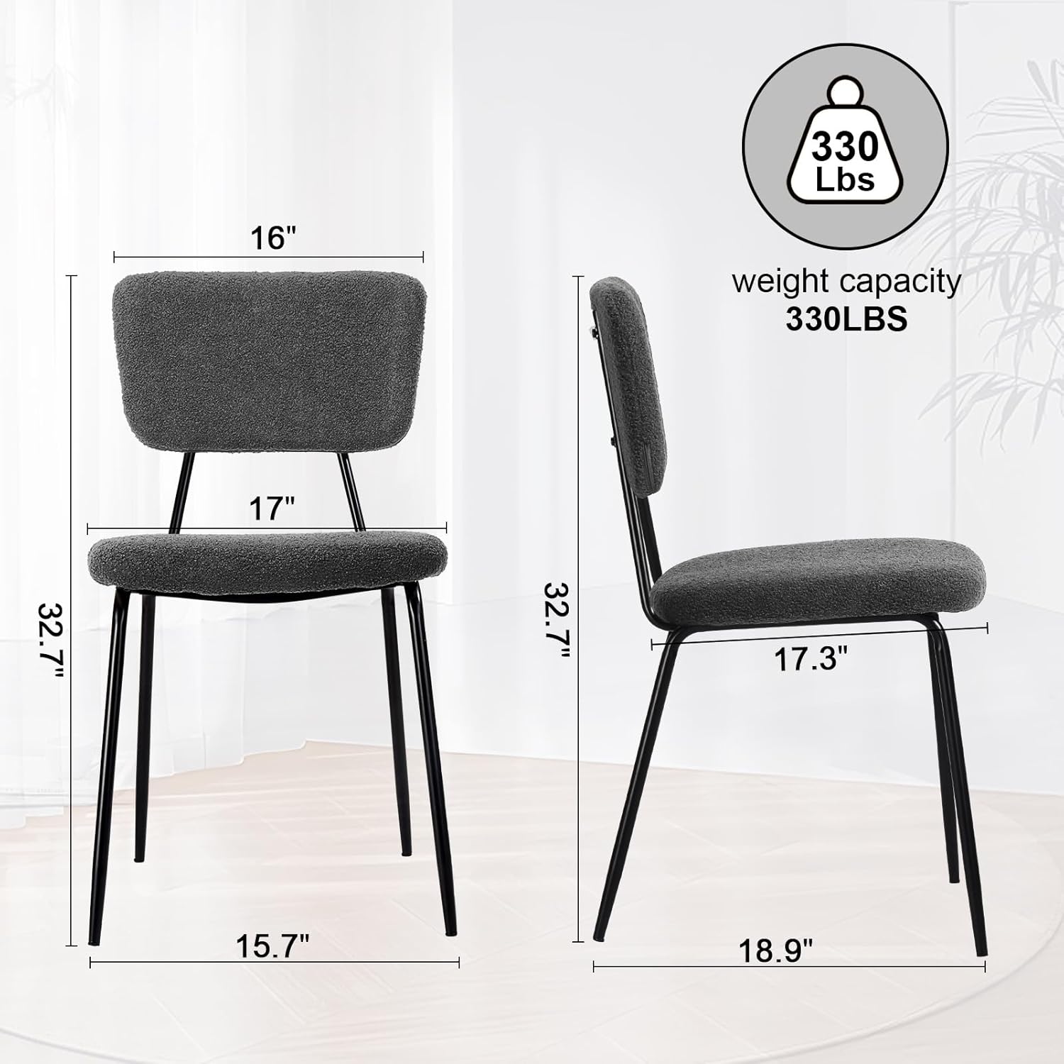 With a seat height of 18.70" and a seat size of 17.3" * 17", these upholstered kitchen chairs with metal frames ensure optimal sturdiness and durability. The thickened metal legs resist bending, allowing each dining chair to confidently hold up to 330 pounds.
