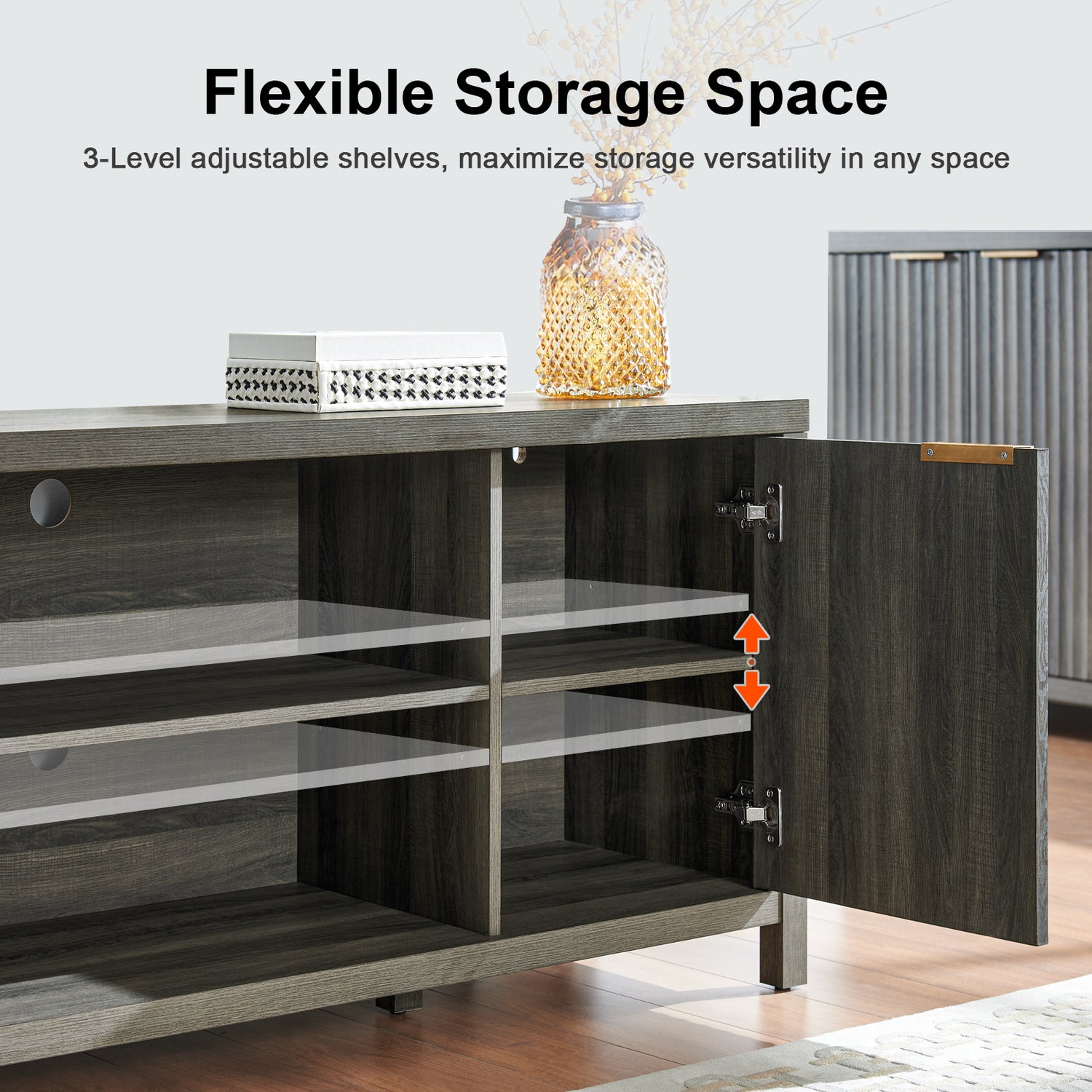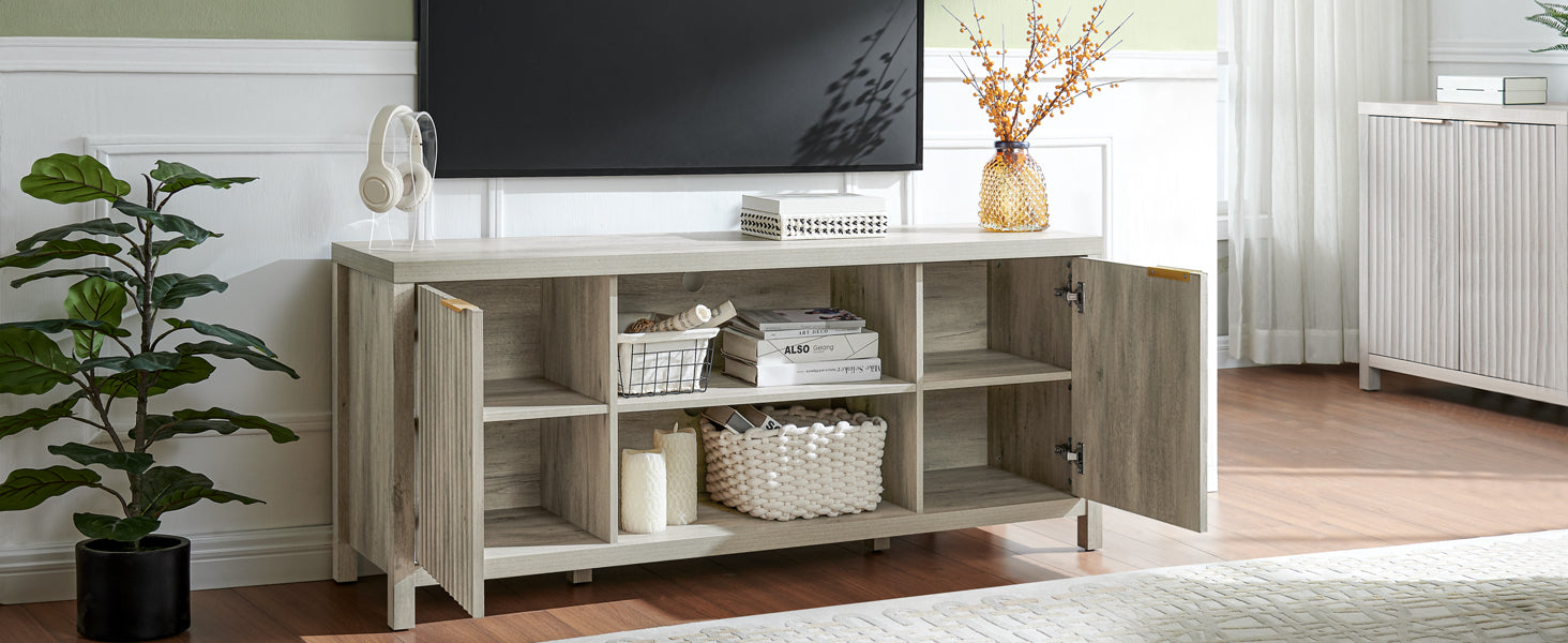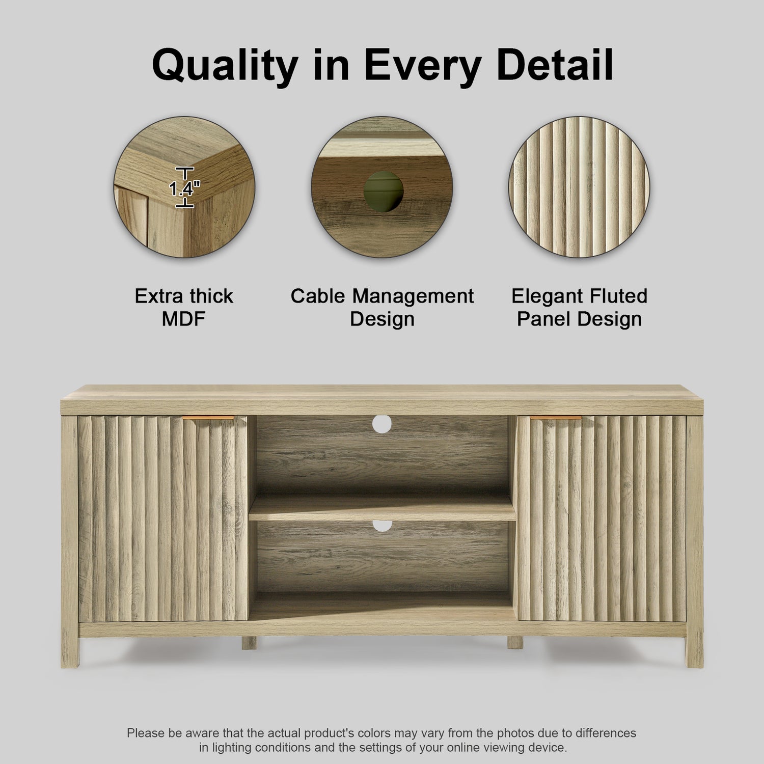 Wooden Fluted Mid Century Modern Television Stands for 60/65/70/75 TV