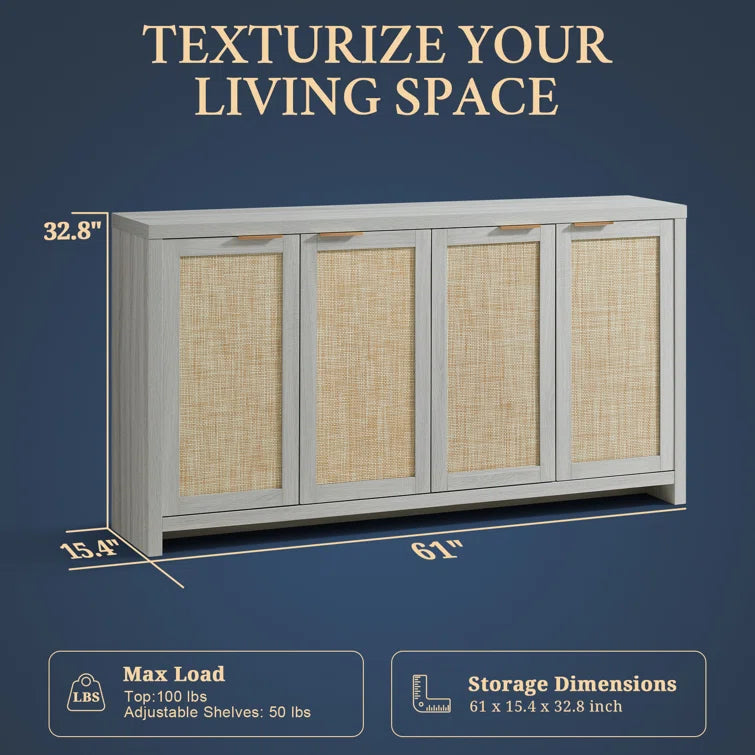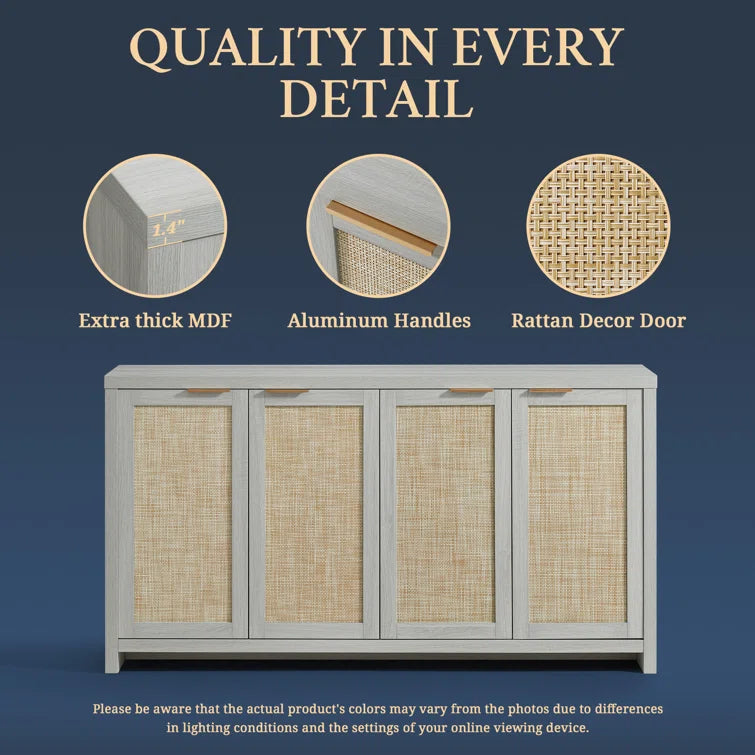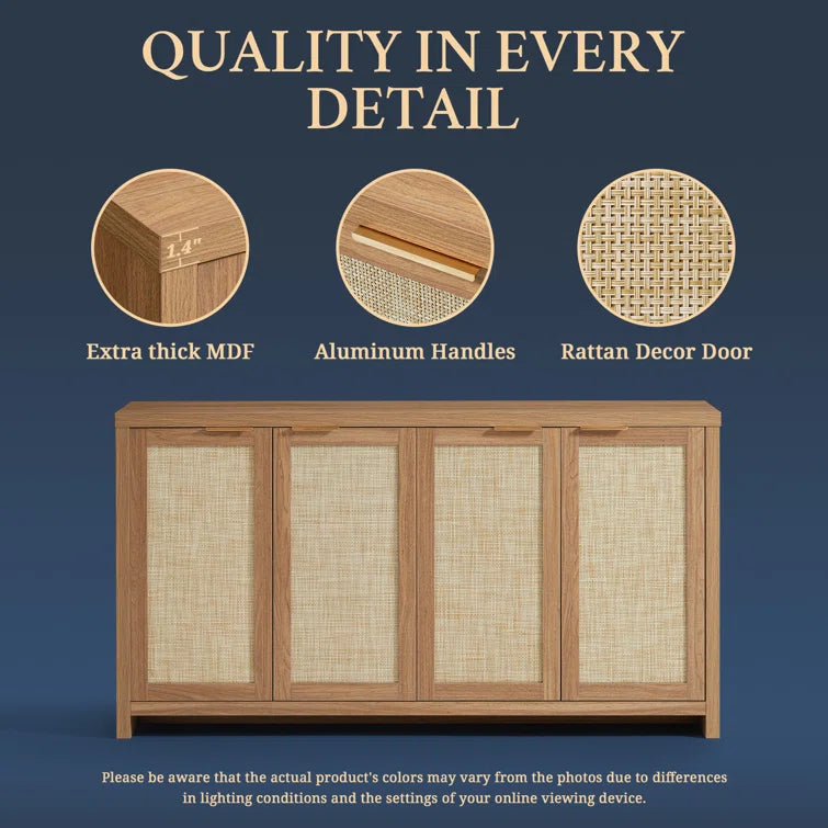 Absolutely love my Rattan 4-Door Storage Sideboard! The natural rattan doors add warmth and style to my space, and the storage is fantastic – it holds everything I need. High-quality craftsmanship and a beautiful design. Perfect blend of functionality and elegance!
