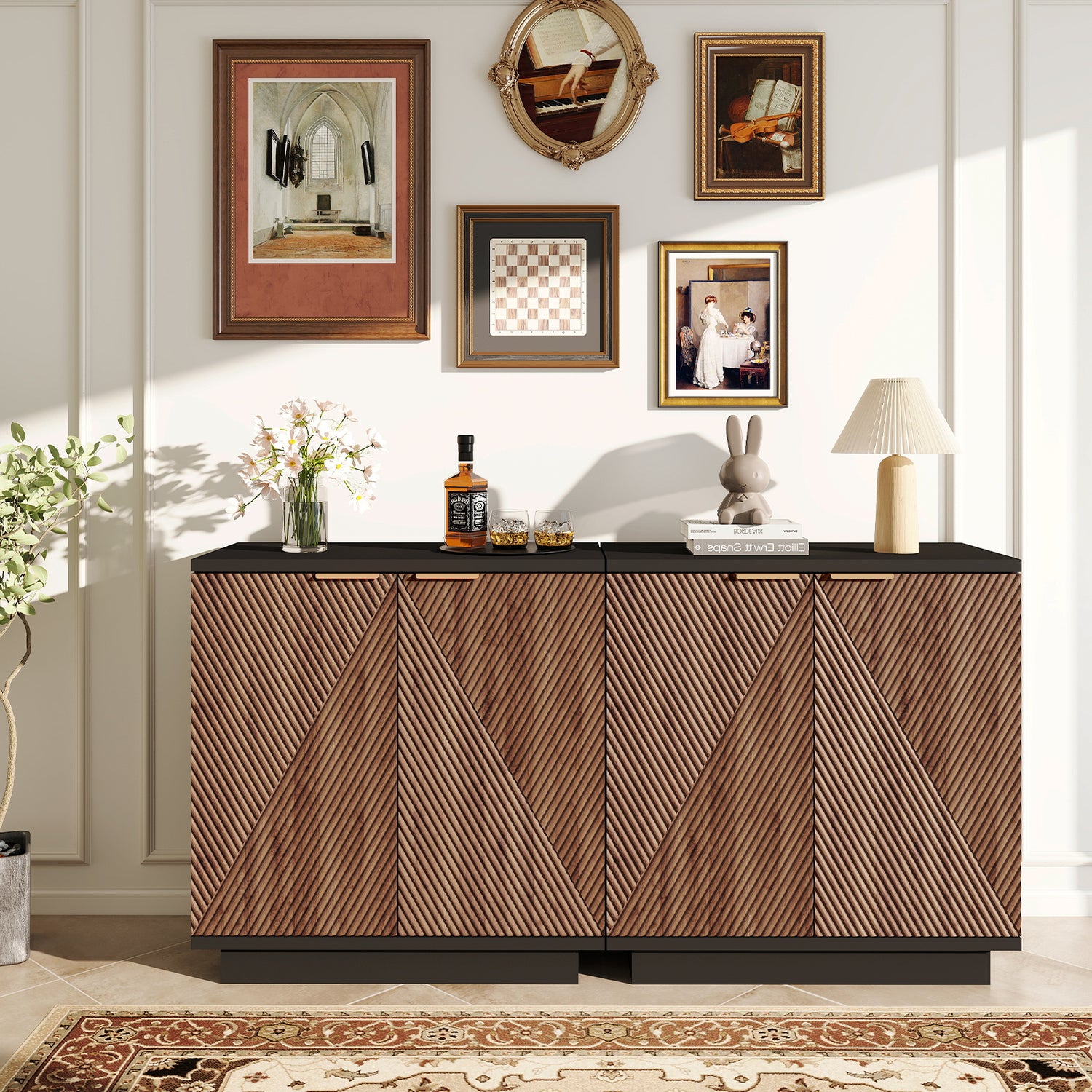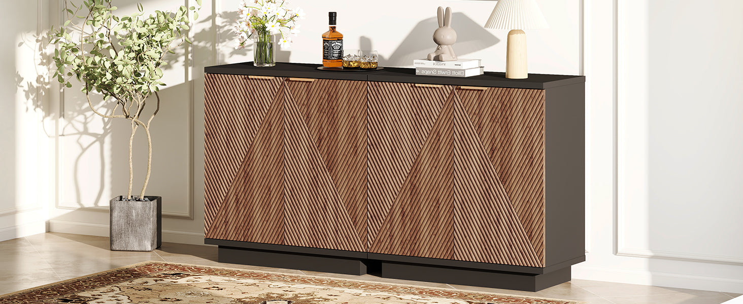The distinctive 3D spliced stripe design creates varied light reflections, adding depth and dimension to the cabinet. This effect provides an ever-changing visual experience, making the cabinet a dynamic element in any room. Its elegant, contemporary look complements both modern and traditional interior styles, making it an adaptable choice for various decor themes.