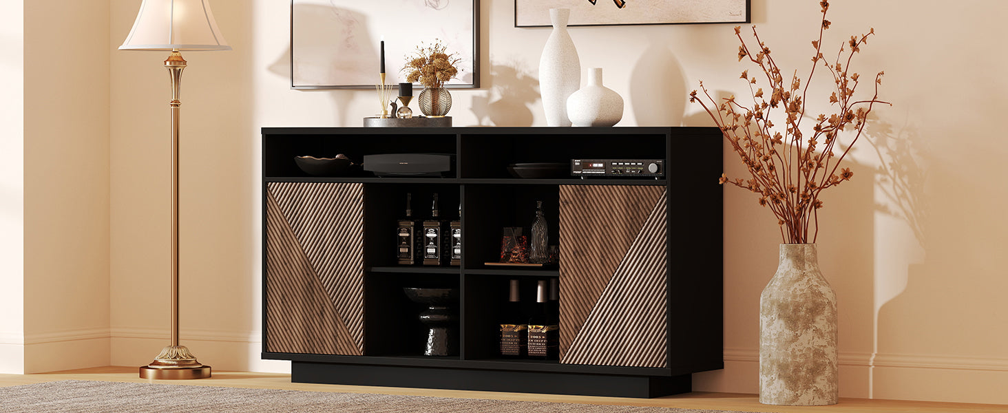 Vacuum Forming Sliding Door Dining Side Cabinet - Special Walnut / 1PC / Exterior Grade MDF Board is backordered and will ship as soon as it is back in stock.