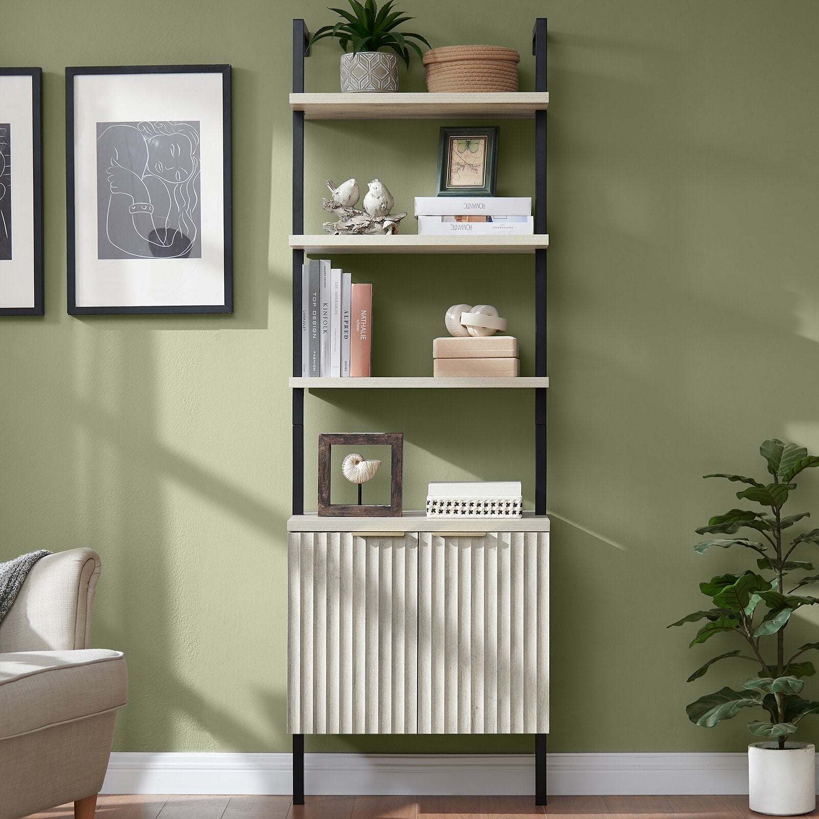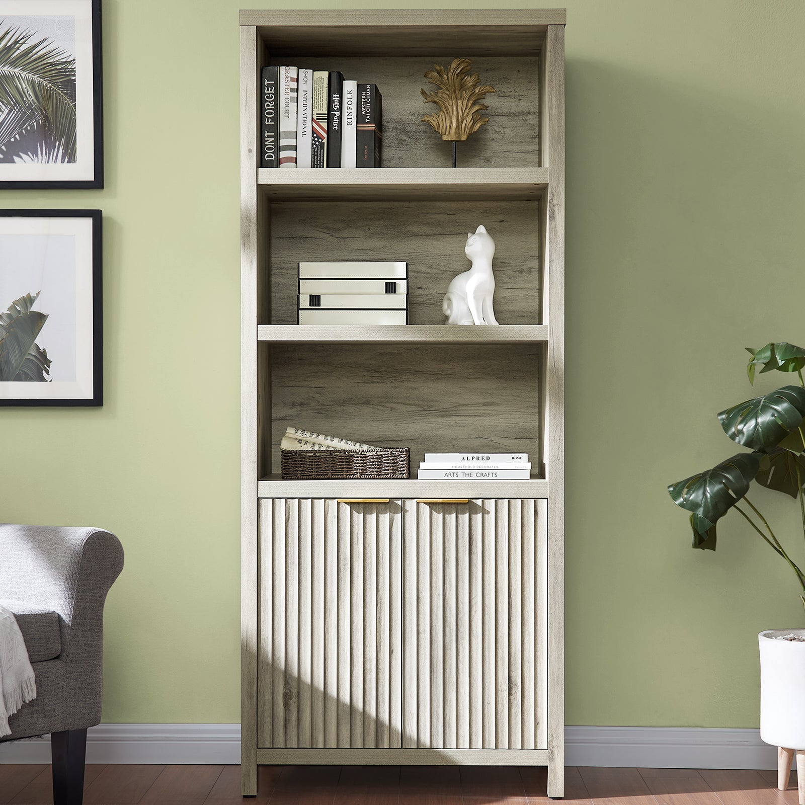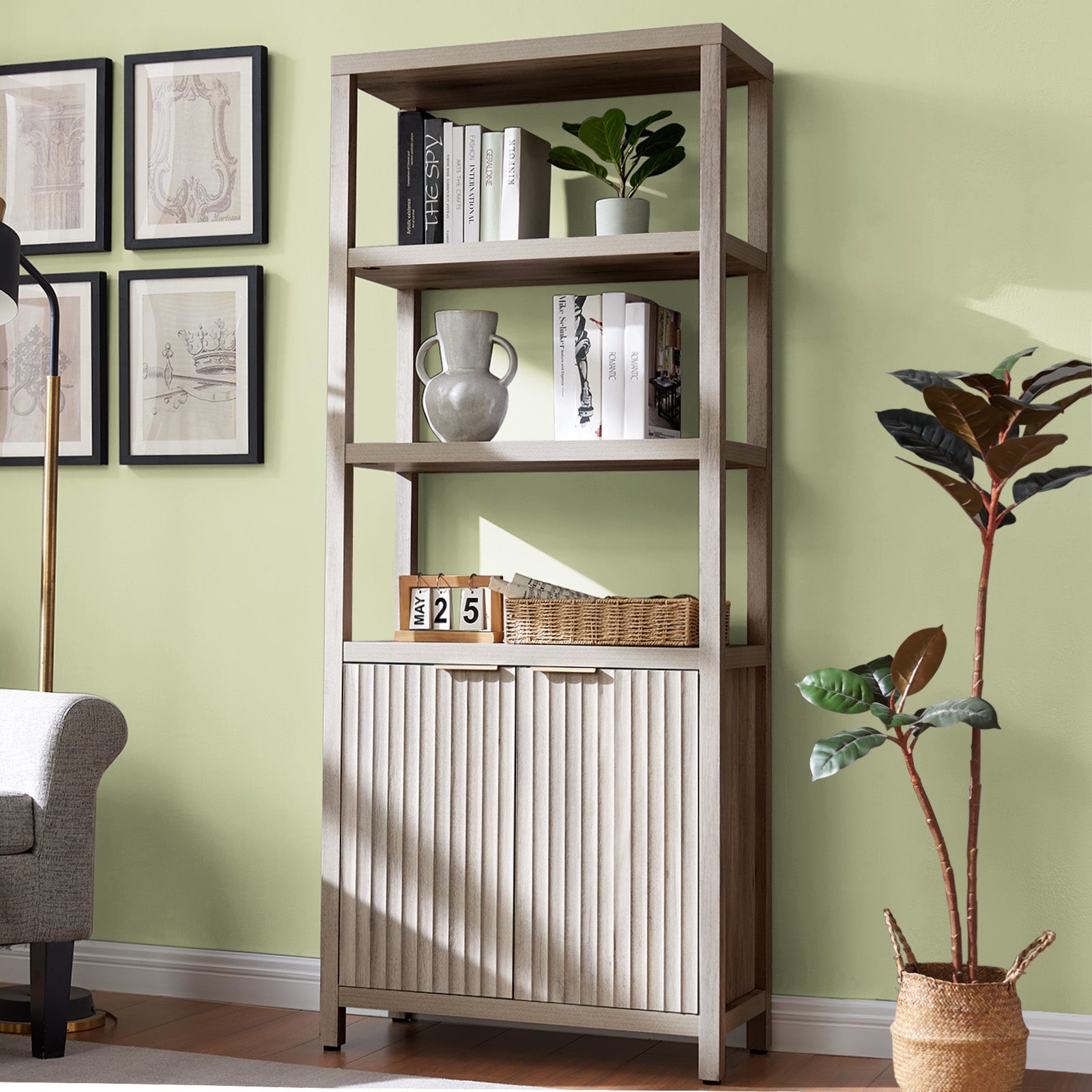 Wooden Fluted 5-Tier Large Tall Book Shelf with Doors Cabinet