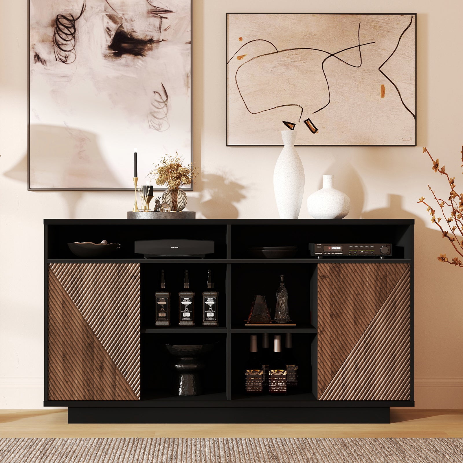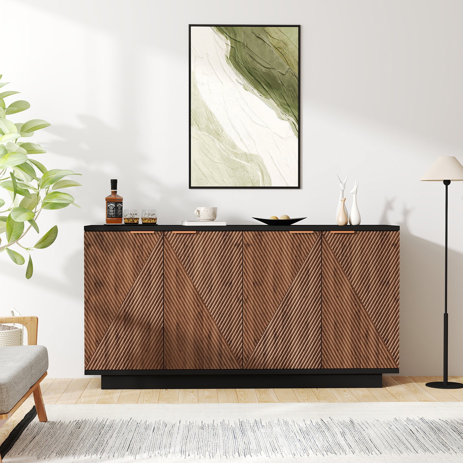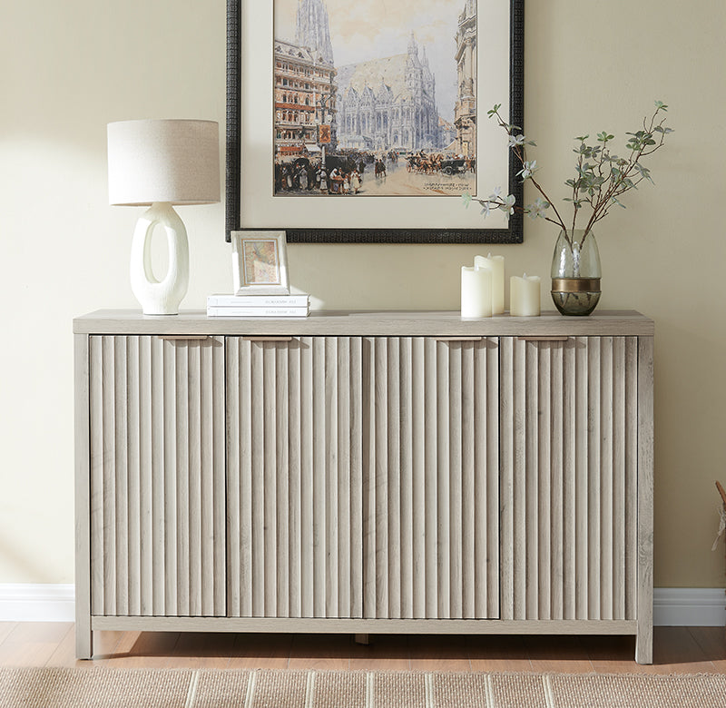 Fluted Reeded Glass Double Doors Wooden Kitchen Console Sideboard