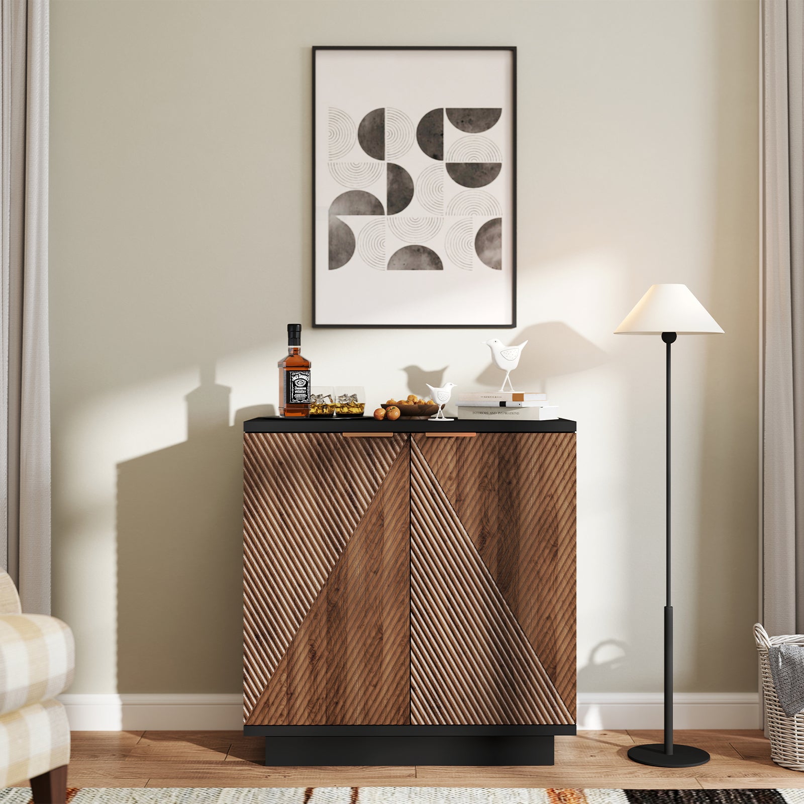 Wooden Fluted Mid Century 32.8" Tall Liquor Bar Cabinets