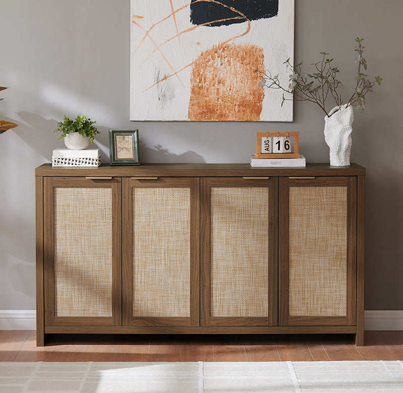 Rattan 65-Inch TV Stand with 2-Door Storage