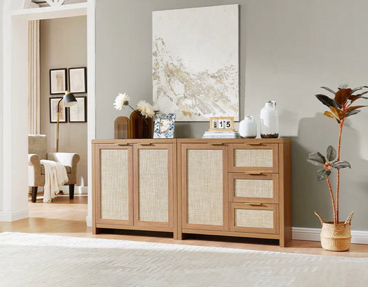 A perfect blend of natural beauty and refined design.The bold geometric patterns on the doors evoke a sense of movement and depth, adding timeless elegance to any space.