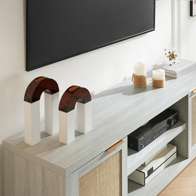 This TV stand is a perfect addition to my living room! It fits my 65-inch TV comfortably and has just the right amount of storage. The rattan doors are gorgeous and add a touch of texture that makes the stand unique. It was easy to assemble, and the quality is top-notch.